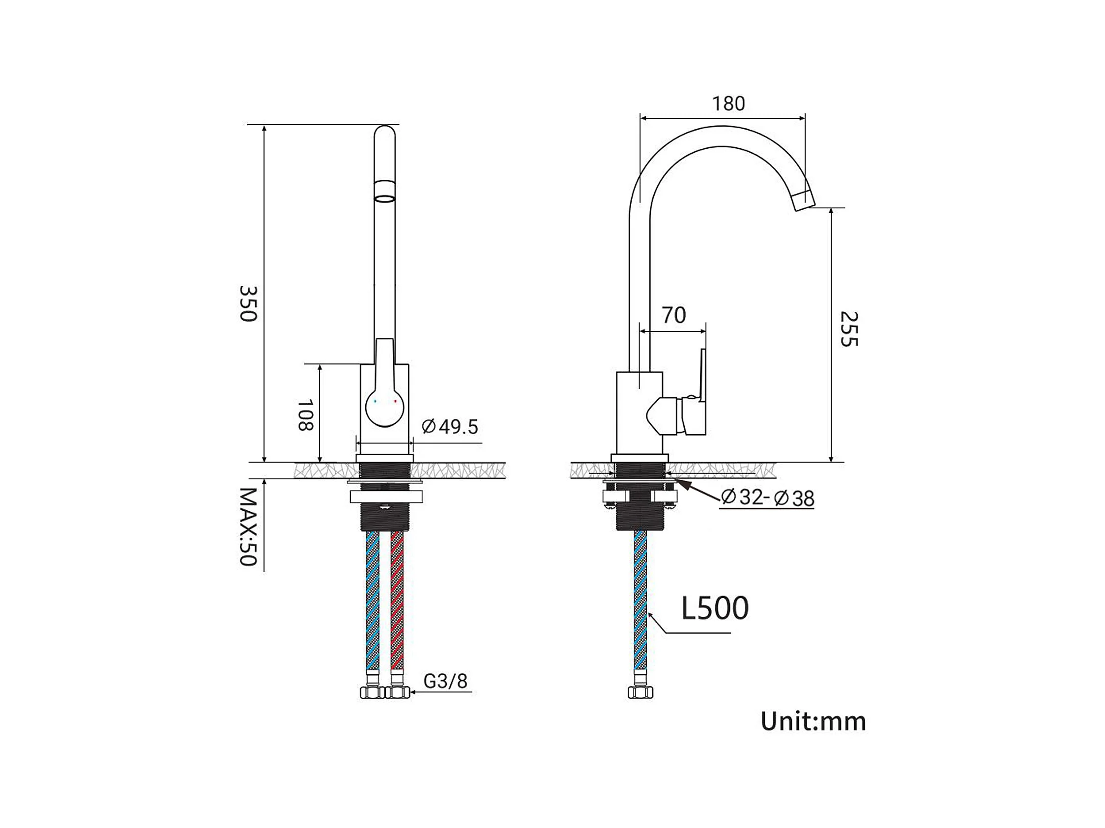 Robinet Cuisine Flexible Robinet avec 2 Types de Jets, Mitigeur Cuisine Rabattable, Flexible Mitigeur Evier avec Eau Chaude et Froide - Noir + Brossé