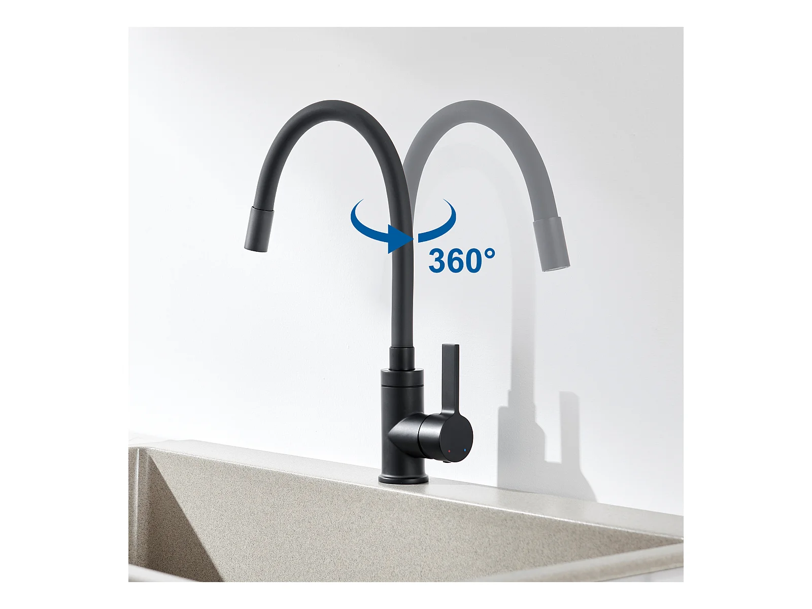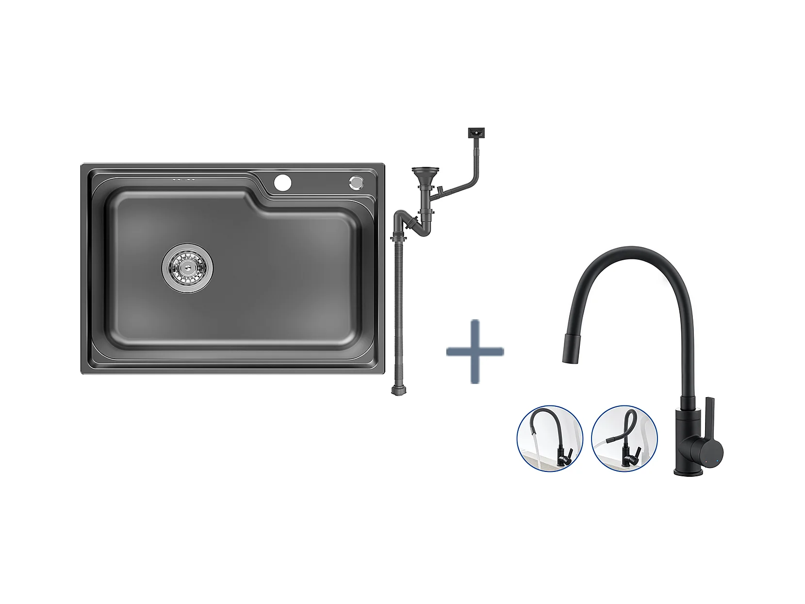 AuralumMax Évier Cuisine 1Bac 62*45*21CM,en Inox PVD Nano Vasque à Poser,Noir+Robinet Cuisine Rotatif 360° Eau Froide/Chaude,Noir avec points blancs