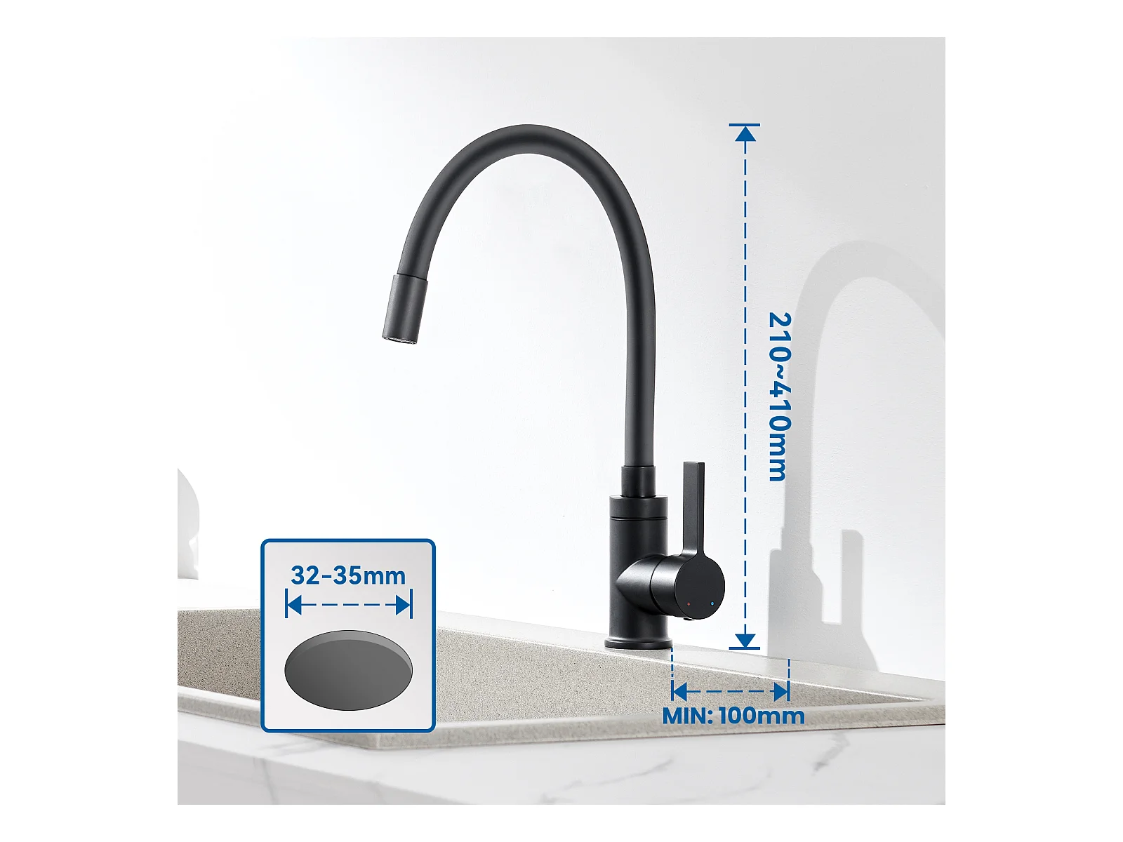 Auralum Max Évier Cuisine 1 Bac 62*45*21CM,en Inox PVD Nano Vasque à Poser,Noir+Robinet Cuisine,Orientable 360°,Eau Chaude/Froide,Noir