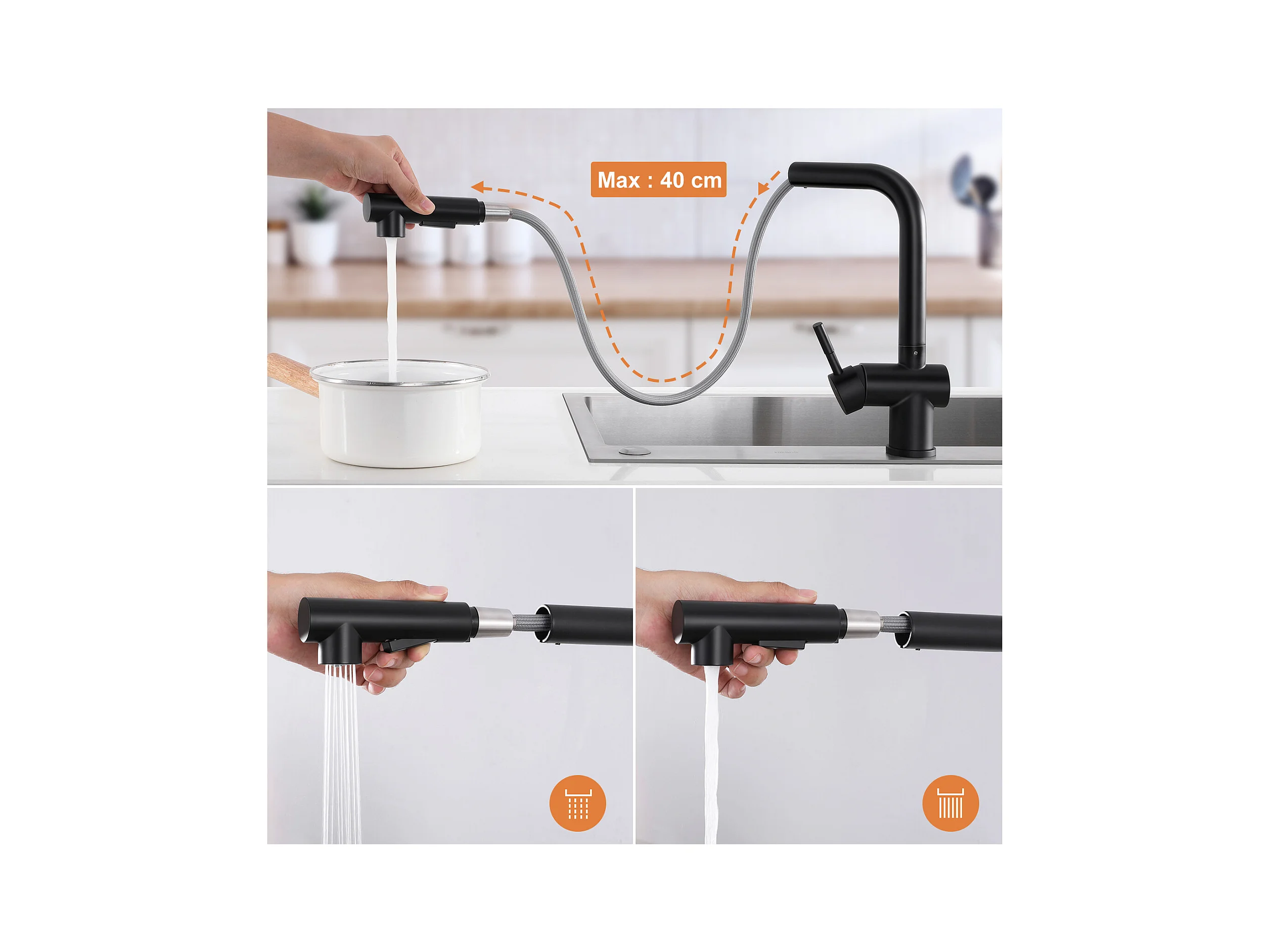 NETTLIFE Robinet de Cuisine avec Douchette Extractible Mitigeur Cuisine Bec Rotatif Mitigeur d'Évier haute pression avec 2 types de jets ,Noir