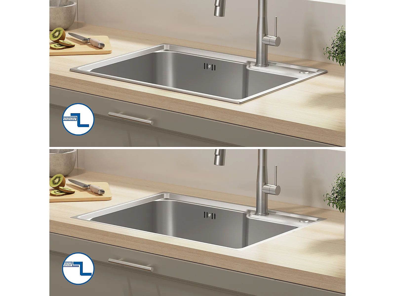 Auralum Max Évier Cuisine 1 Bac 62*45*21CM Évier de Cuisine en Acier Inoxydable PVD Nano Vasque à Poser,Argent