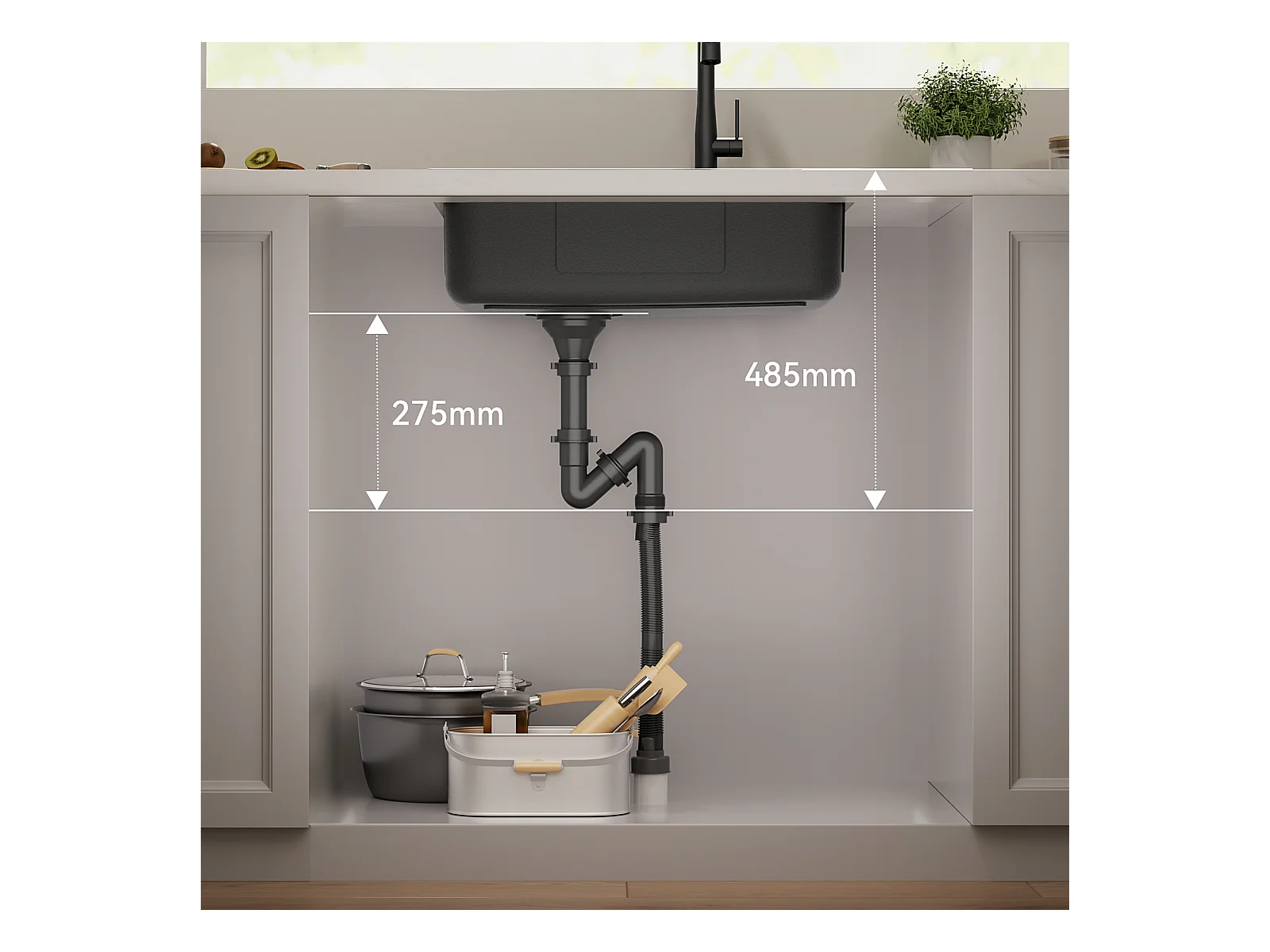 Auralum Max Évier Cuisine 1 Bac 62*45*21CM,en Inox PVD Nano Vasque à Poser,Noir+Robinet Cuisine,Orientable 360°,Eau Chaude/Froide,Noir
