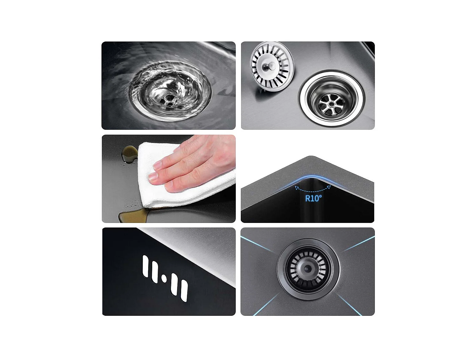 AuraLum Max Évier Cuisine 1 Bac 70*44*19CM Évier Montage à Encastrer,à Fleur/Sous-Plan Acier Inox 304 Évier avec Siphon/Trop-Plein,Noir,EU Modèle