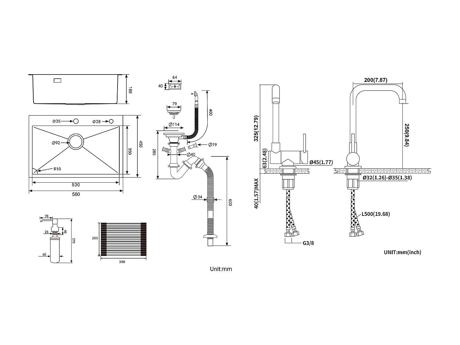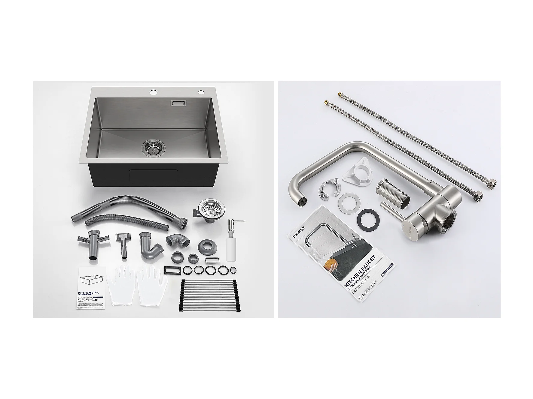 AuraLum Max Évier Cuisine 1 Bac Brossé,58*45*18CM,Égouttoir Énroulable, Distributeur Savon+Mitigeur Cuisine Rabattable Pivotant 360° Eau froid Chaud
