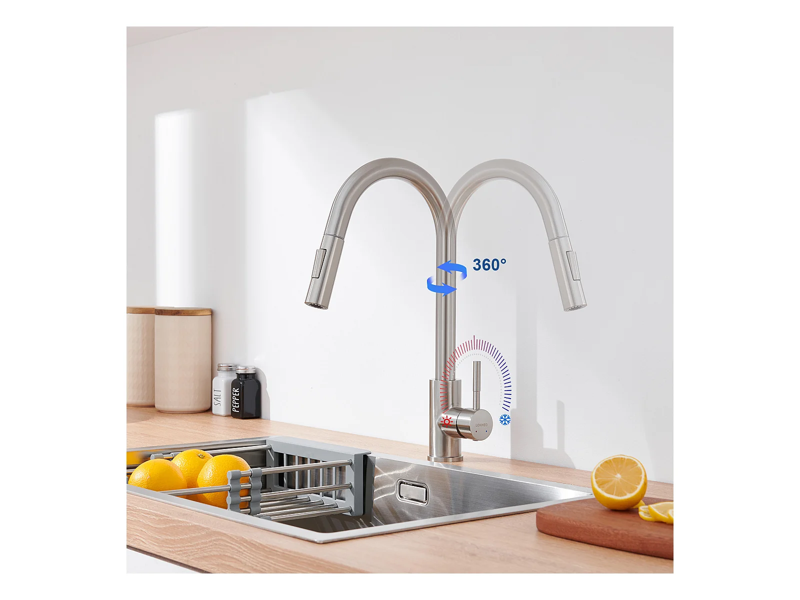 NETTLIFE Robinet de Cuisine avec Douchette Extractible Mitigeur Cuisine Bec Rotatif Mitigeur d'Évier haute pression avec 2 types de jets , Nickel