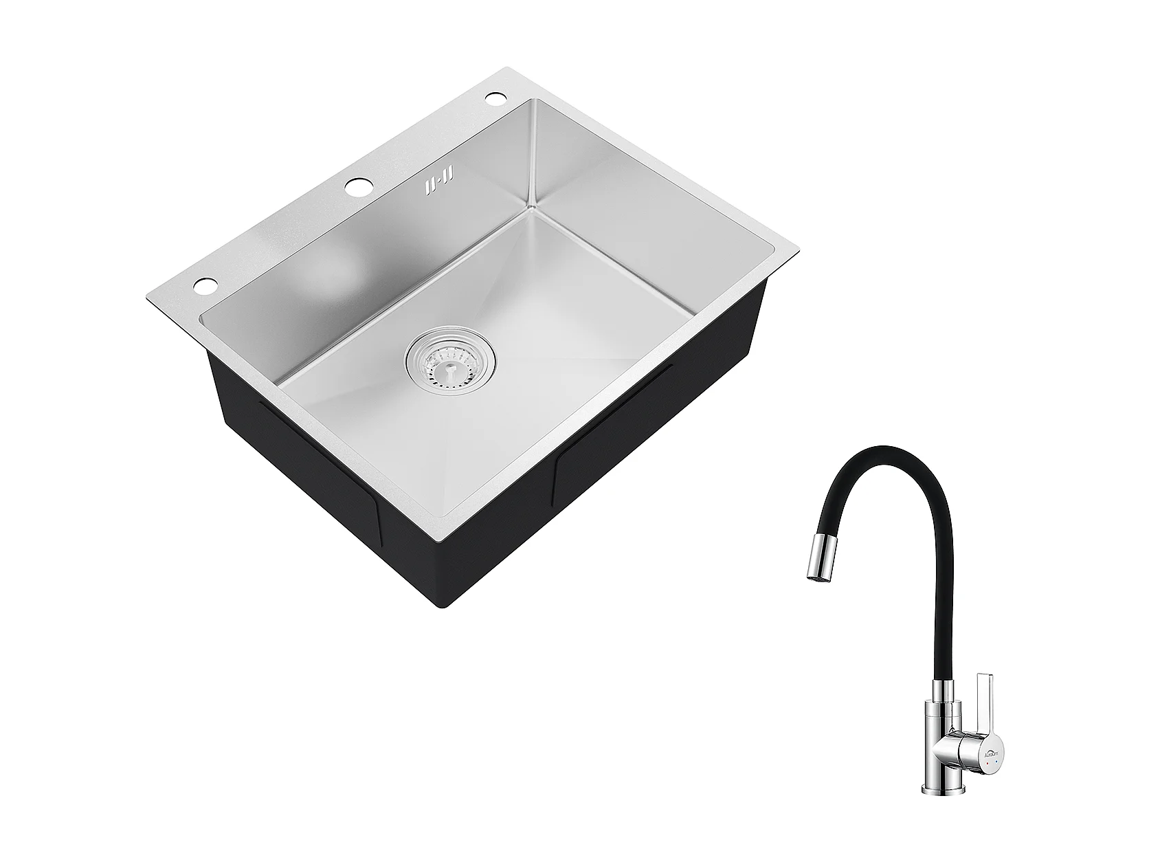 Auralum max Évier Cuisine à Encastrer,1 Bac,60*49*20CM,Évier 1 Cuve en Acier inoxydable 304,Silver+Robinet de Cuisine Flexible Bec Haut Orientable
