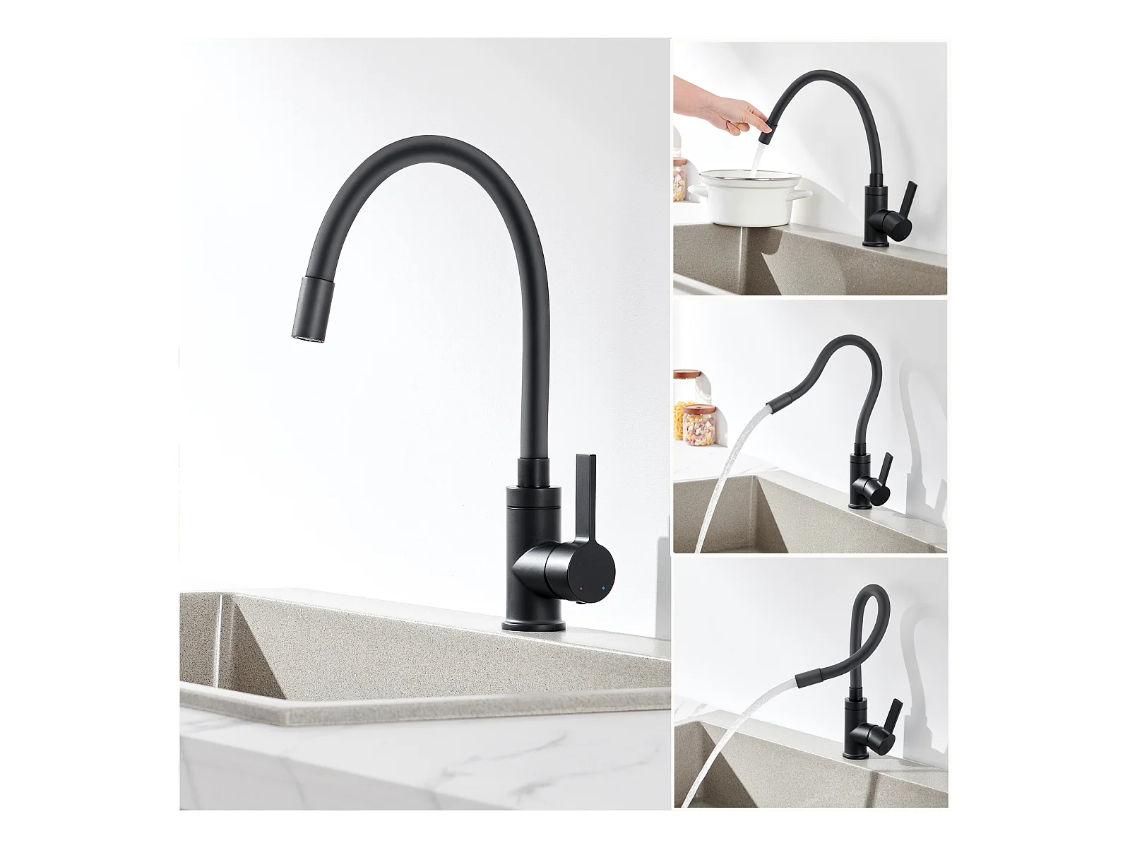 Robinet de cuisine avec douchette extractible en acier inoxydable - Noir mat - ROFLEX