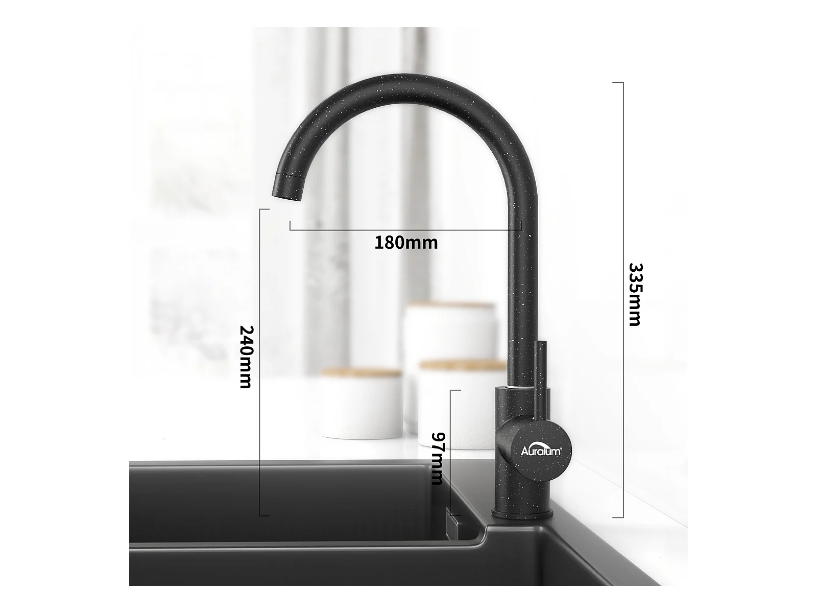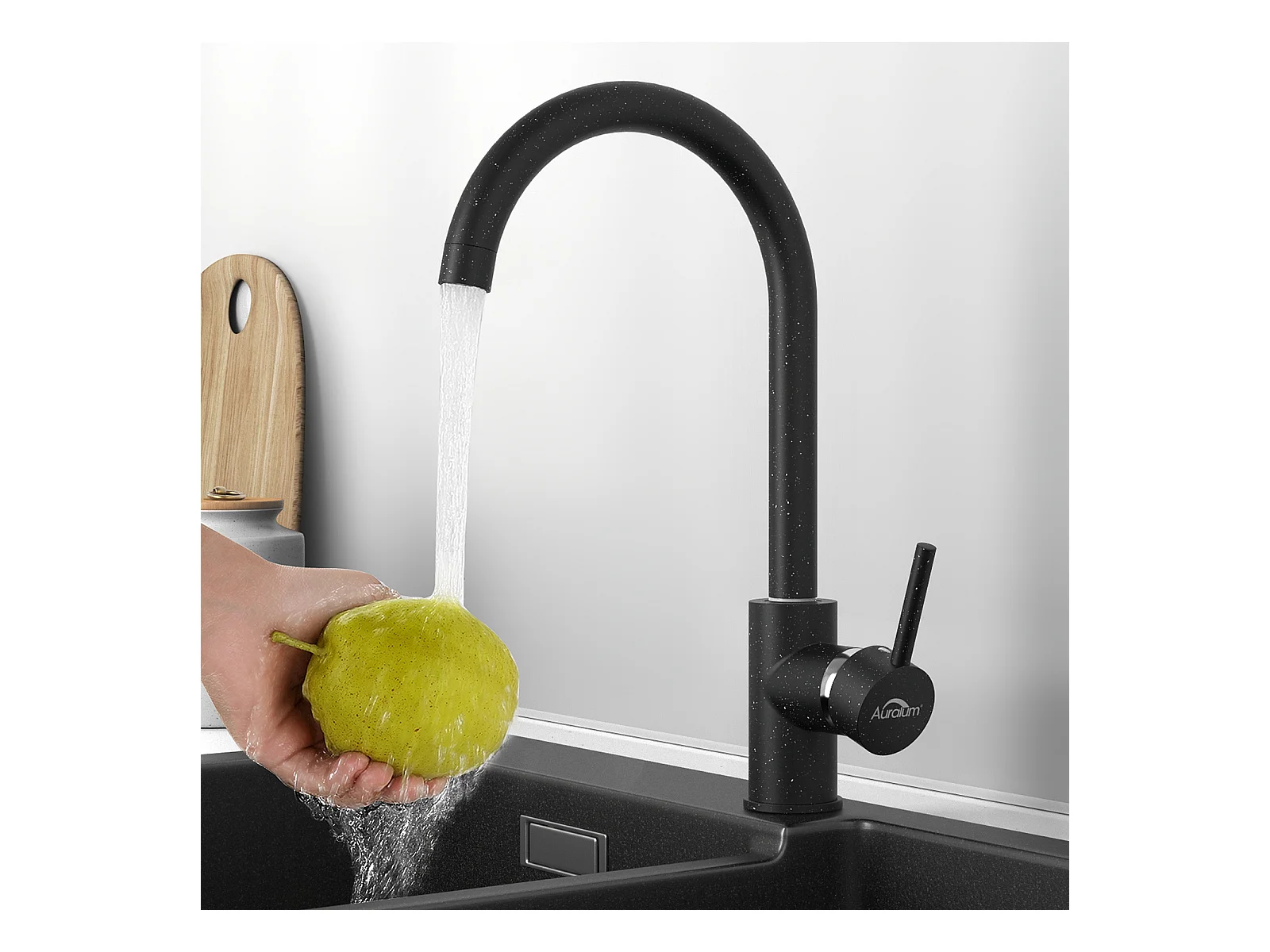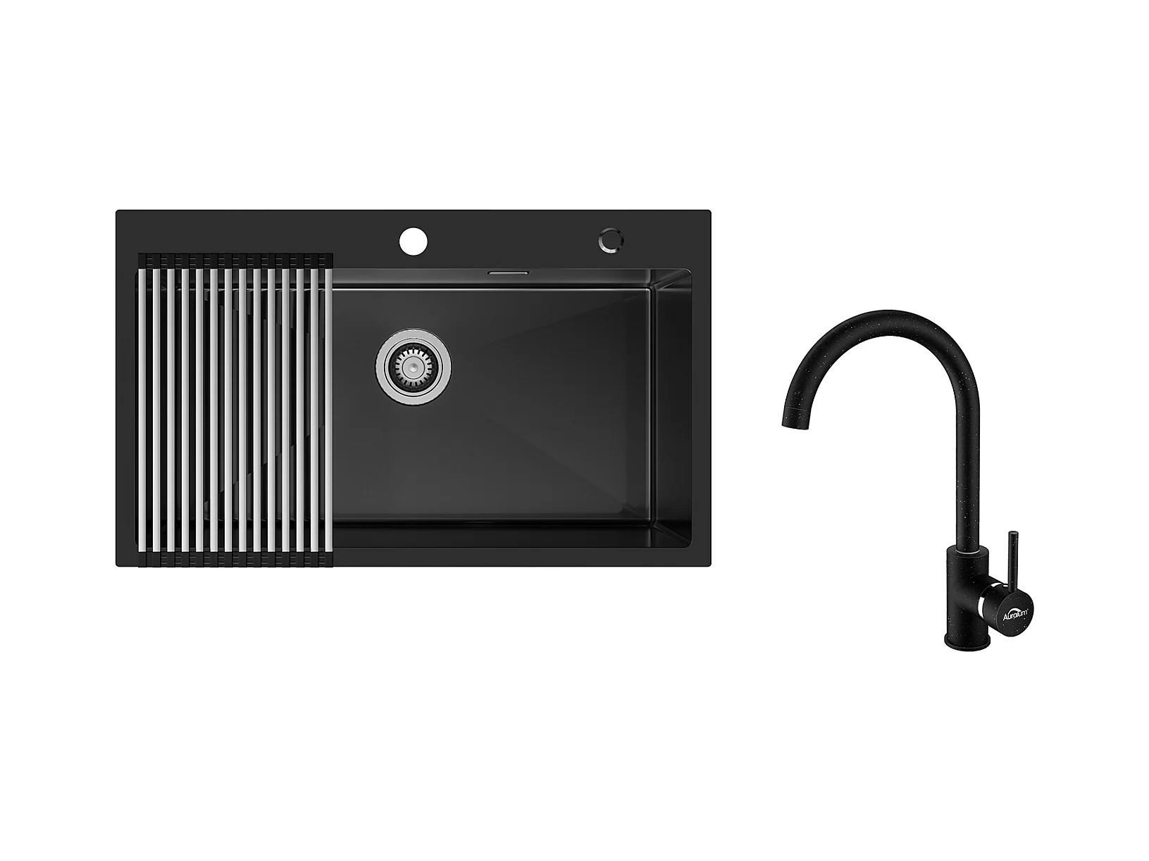 Auralum MAX Évier de Cuisine 1 Bac 75 x 45 cm,Évier Inox Noir avec Égouttoir Pliable+Robinet Cuisine Rotatif 360° Eau Froide et Chaude,Noir