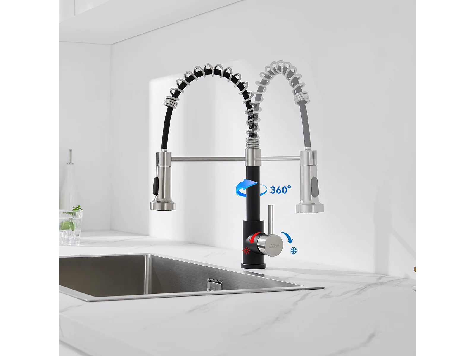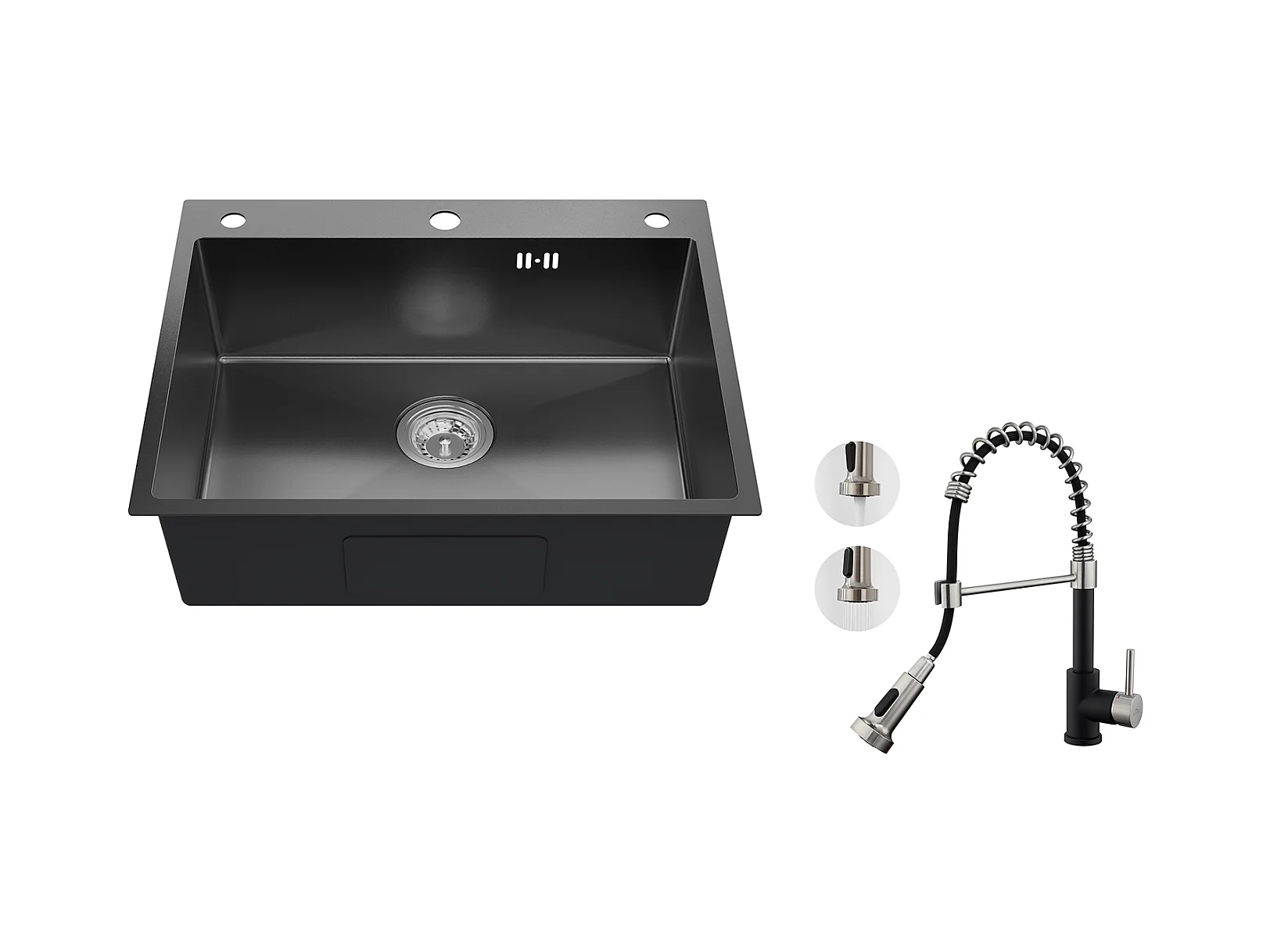 Auralum max Évier de Cuisine à Encastrer,1 Bac,60*49*20CM,Acier inoxydable 304,Noir+Robinet Cuisine Ressort avec Douchette Extensible,2 Modes,Noir