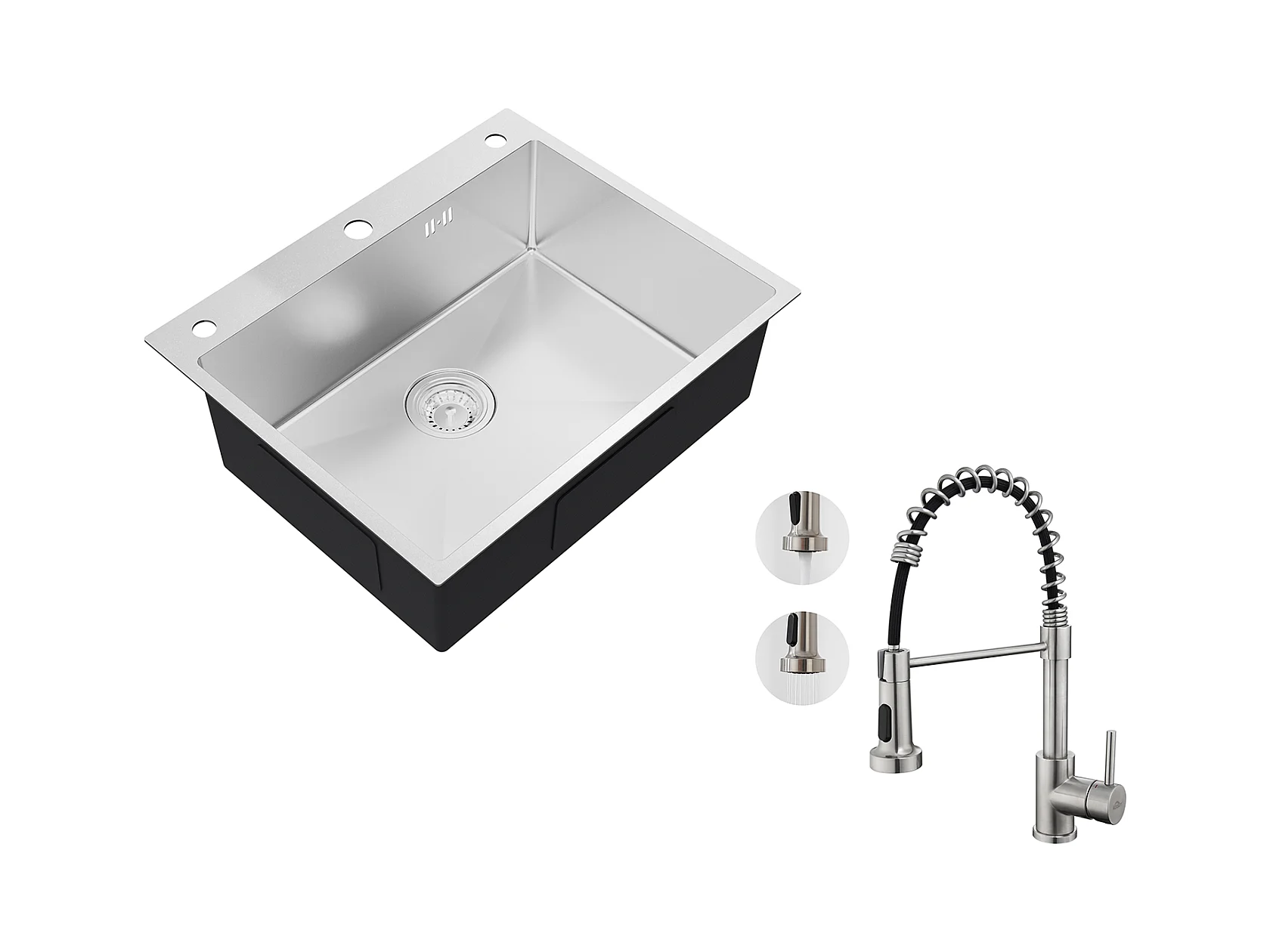 Auralum max Évier de Cuisine à Encastrer,1 Bac,60*49*20CM,Évier 1 Cuve en inox 304,Silver+Robinet Cuisine à Ressort avec Douchette Extensible,Brossé