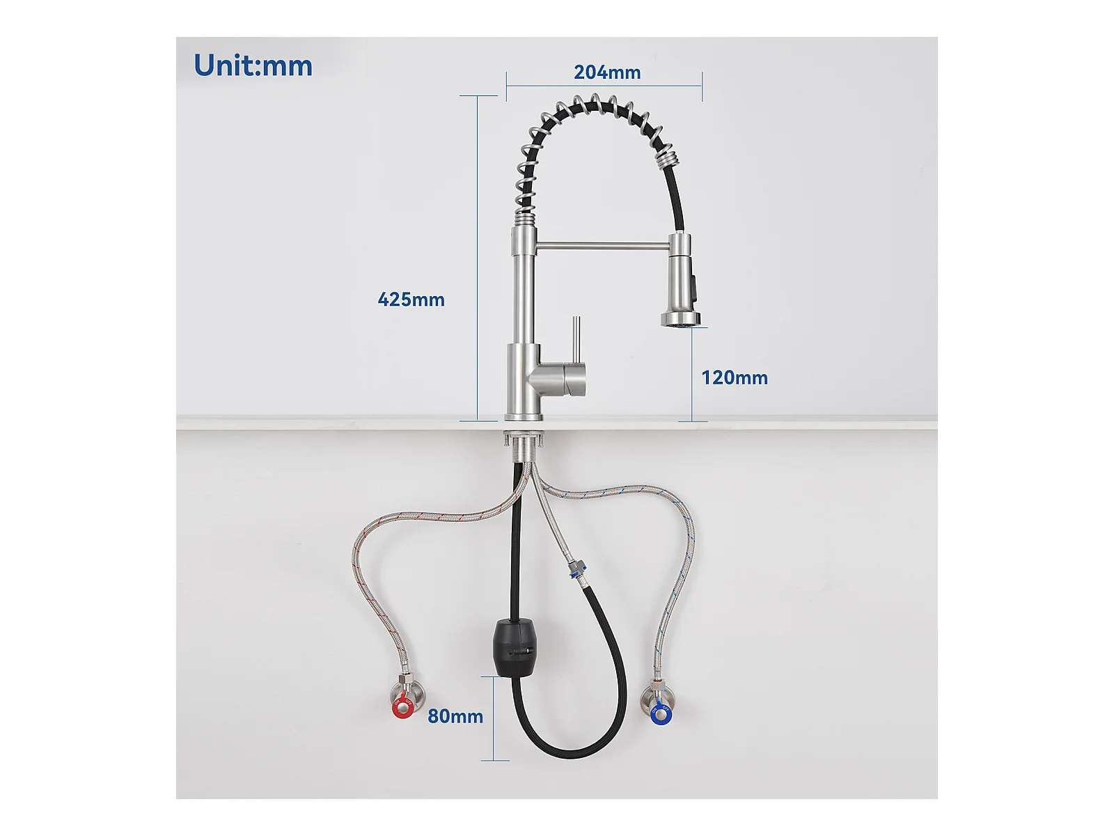 NETTLIFE robinet de cuisine robinet haute pression robinet d'évier de cuisine en acier inoxydable pivotant à 360°