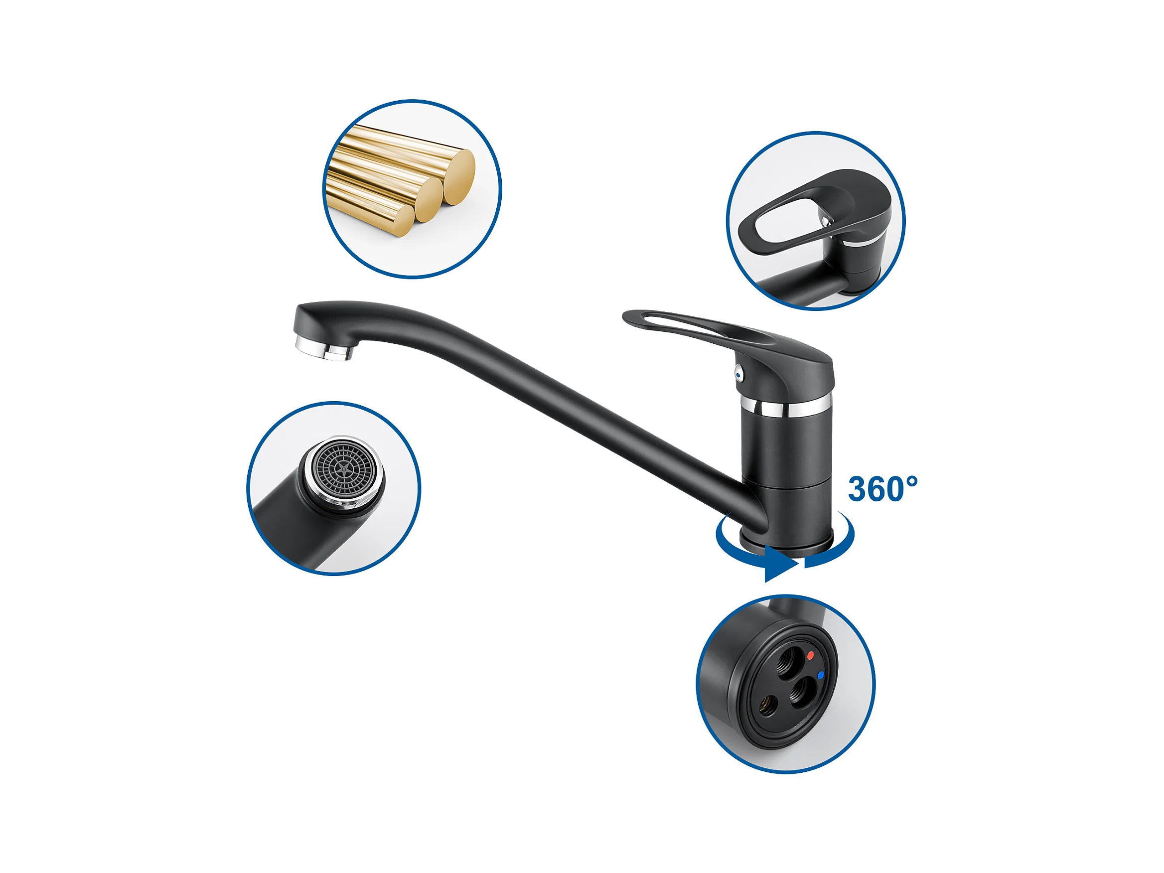 Auralum MAX Mitigeur d'Evier, Robinet de Cuisine Orientable à 360°, Les Conduites d'eau Chaude et Froide et Les Accessoires Complets,en Laiton,Noir