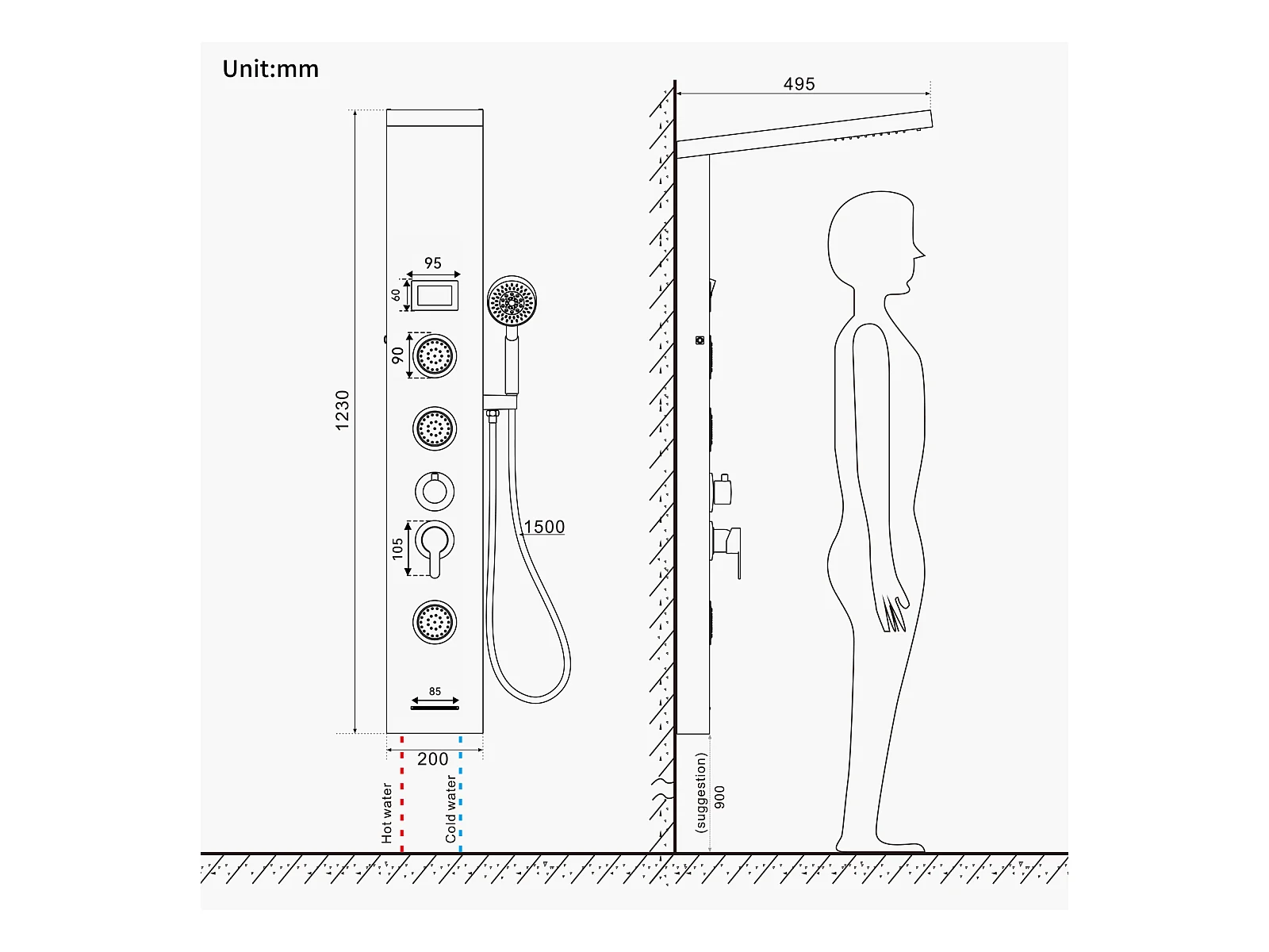 Panneau Douche LED LCD Indicateur de température Colonne Douche Hydromassante Panneau Douche en Acier Inox Brossé avec 3 Jets de Massage,EU Modèle