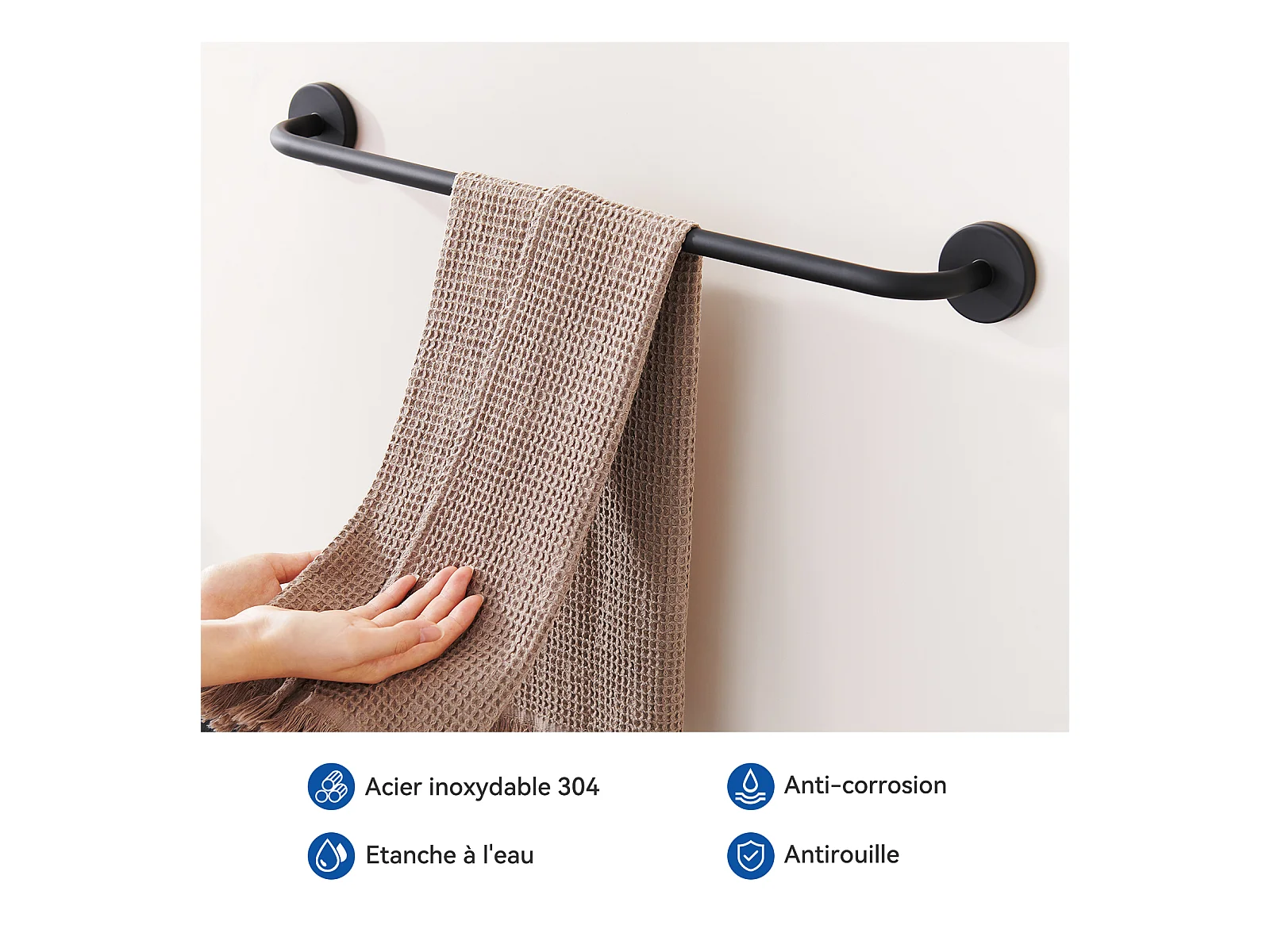 Auralum max Robinet Mitigeur Lavabo avec Douchette Extractible,Noir, +Porte Serviette Salle Bain Adhésif/Perçage,Barres Porte Serviettes, Inox,40 CM