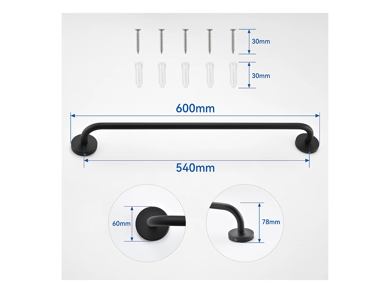 Auralummax Robinet Mitigeur Lavabo avec Douchette Extractible,Noir, Hauteur 187mm+Porte-Serviettes de Salle Bain,Auto-adhésif/ Perçage,60CM,INOX 304