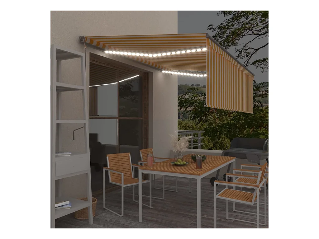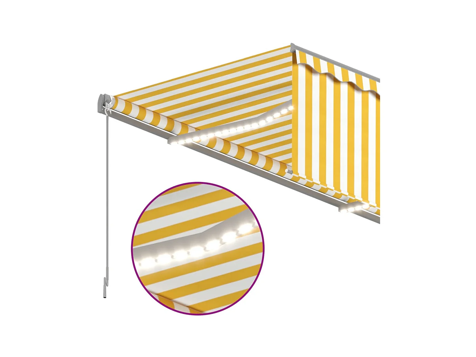 Auvent automatique store capteur de vent/LED 5x3 Jaune/blanc