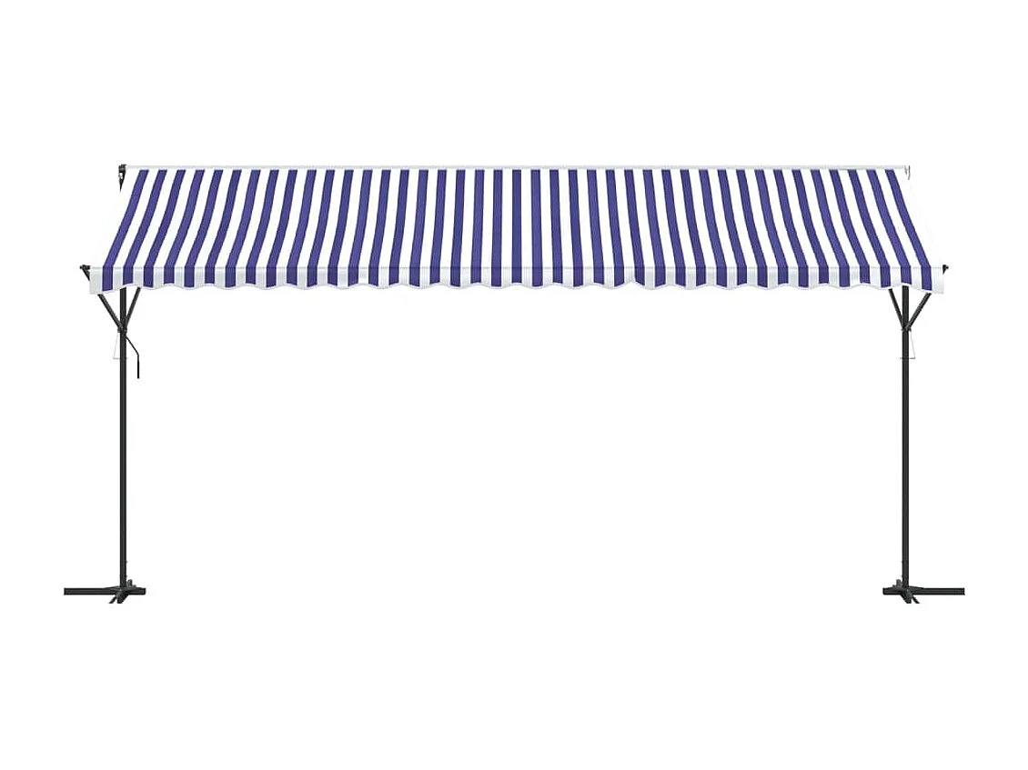 Auvent manuel rétractable sur pied 500x350 cm Bleu/Blanc