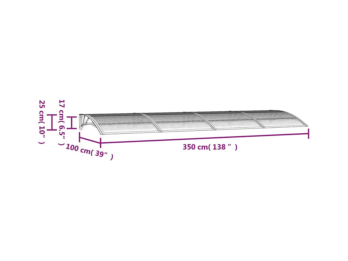 Auvent de porte Gris 350x100 Polycarbonate