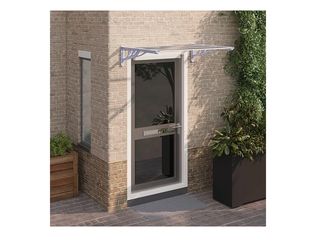 Auvent de porte argenté et transparent 120x90 polycarbonate