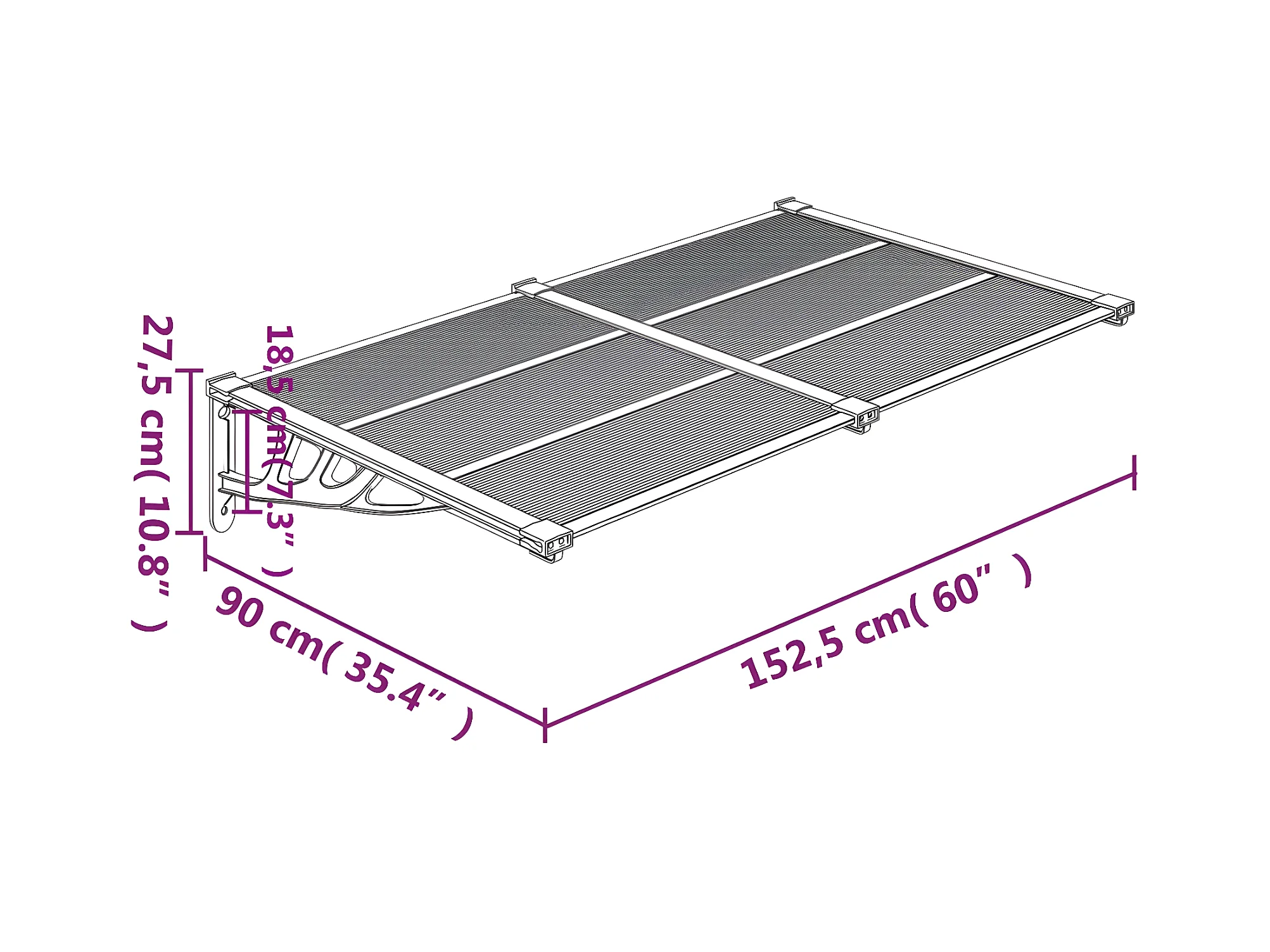 Auvent de porte Gris et transparent 152,5x90 Polycarbonate