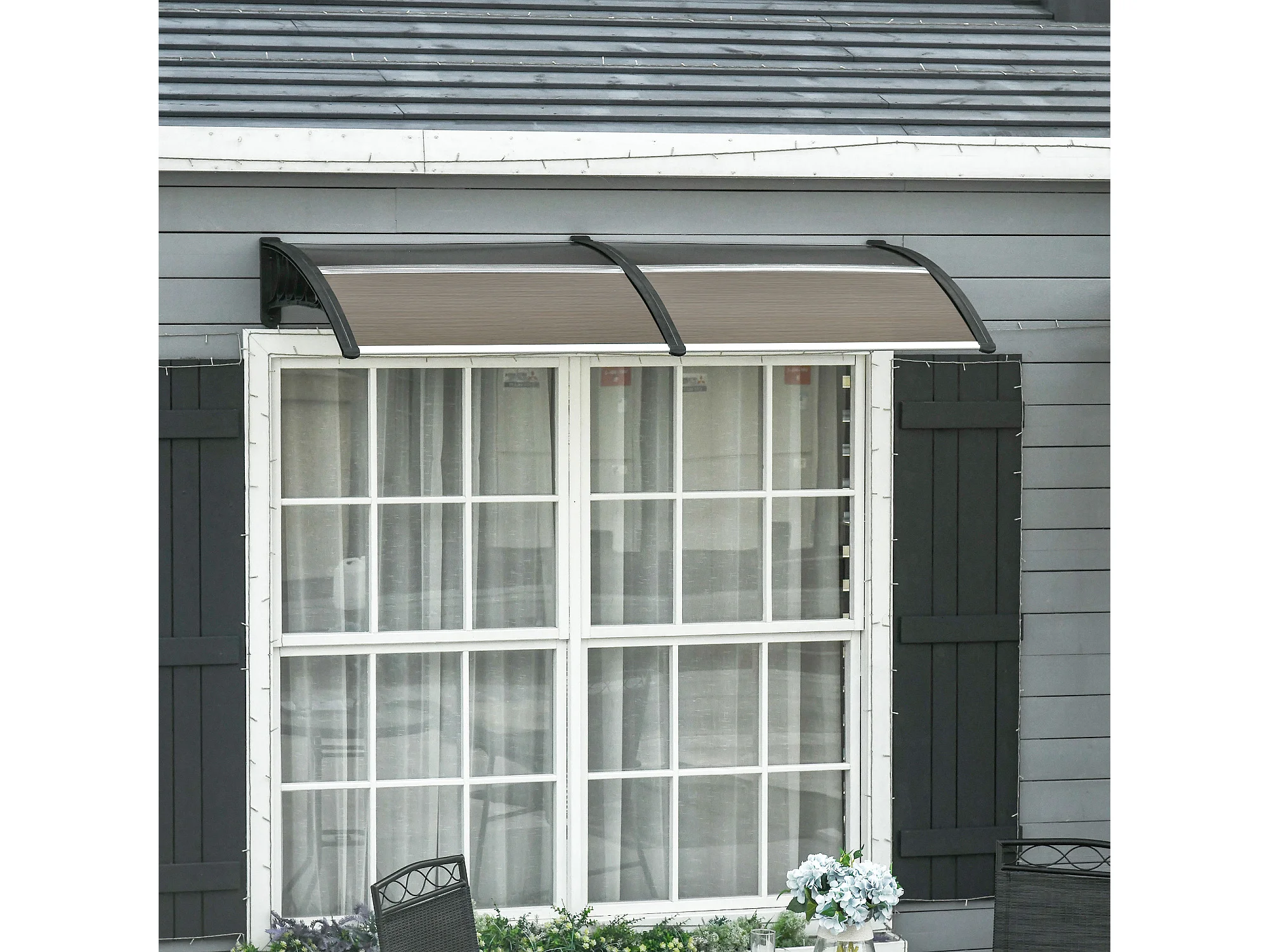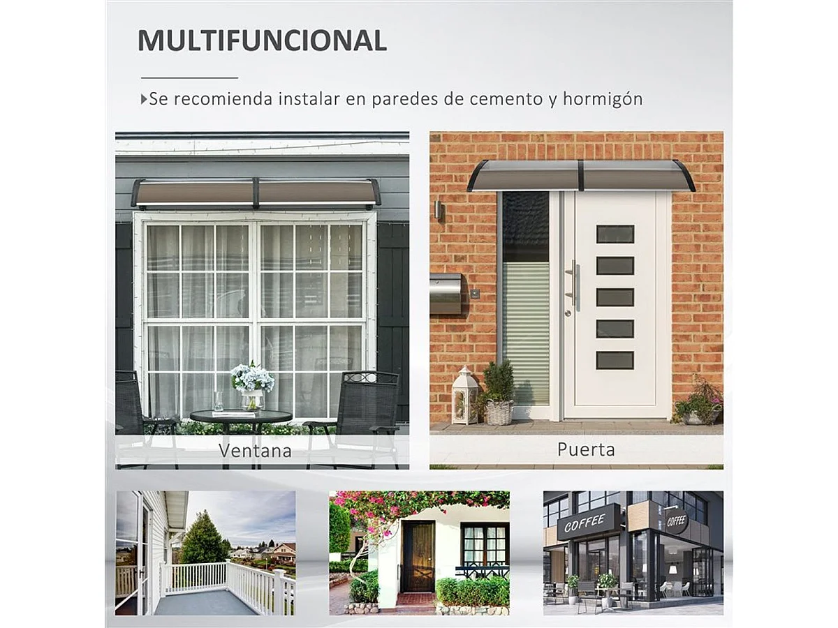 Auvent de protection extérieur – 200 x 96 cm – Noir et marron – Polycarbonate, aluminium et PP
