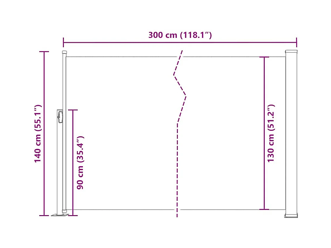 Auvent latéral rétractable 140 x 300 cm Rouge