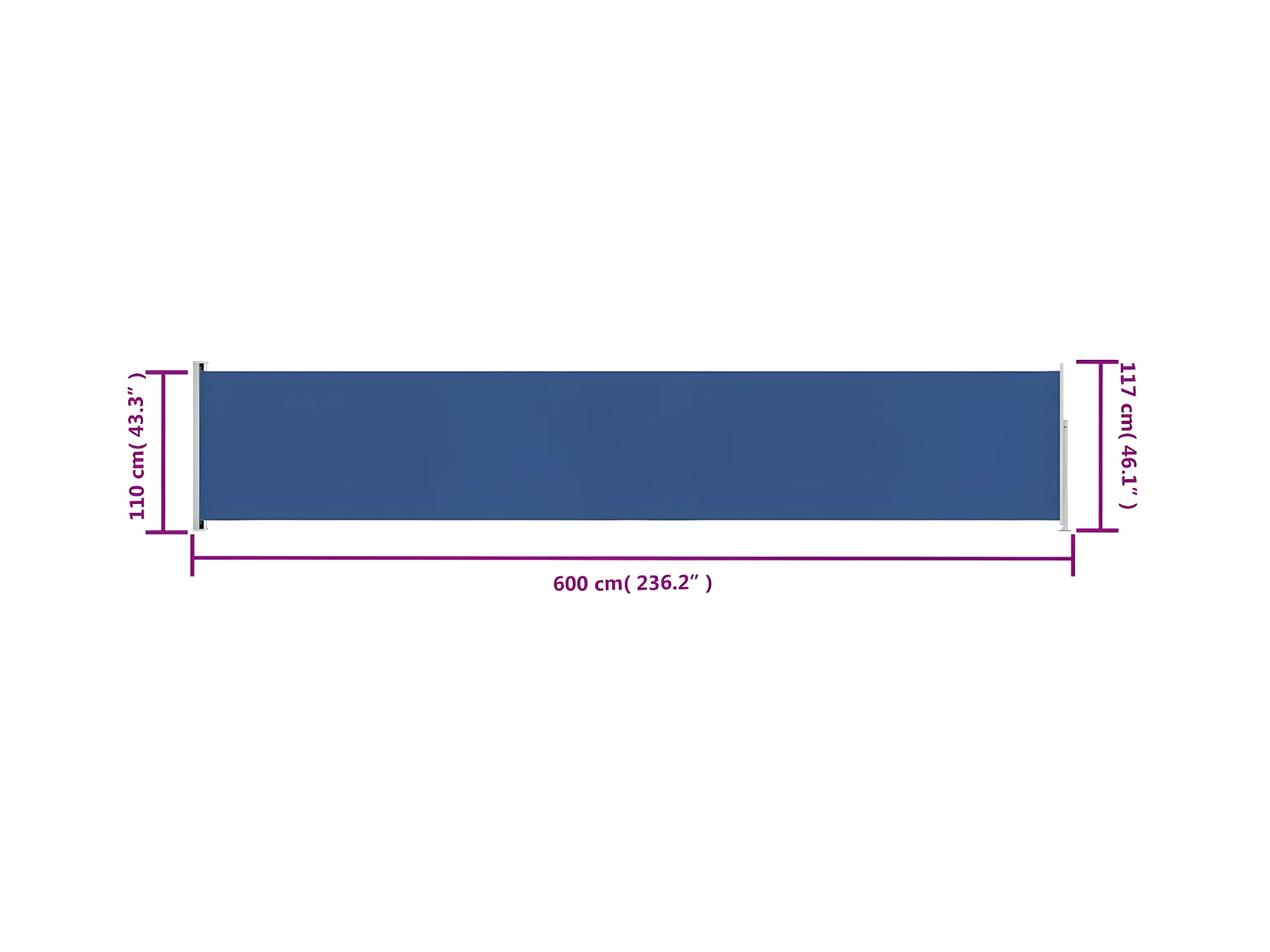 Auvent latéral rétractable de patio 117x600 cm Bleu