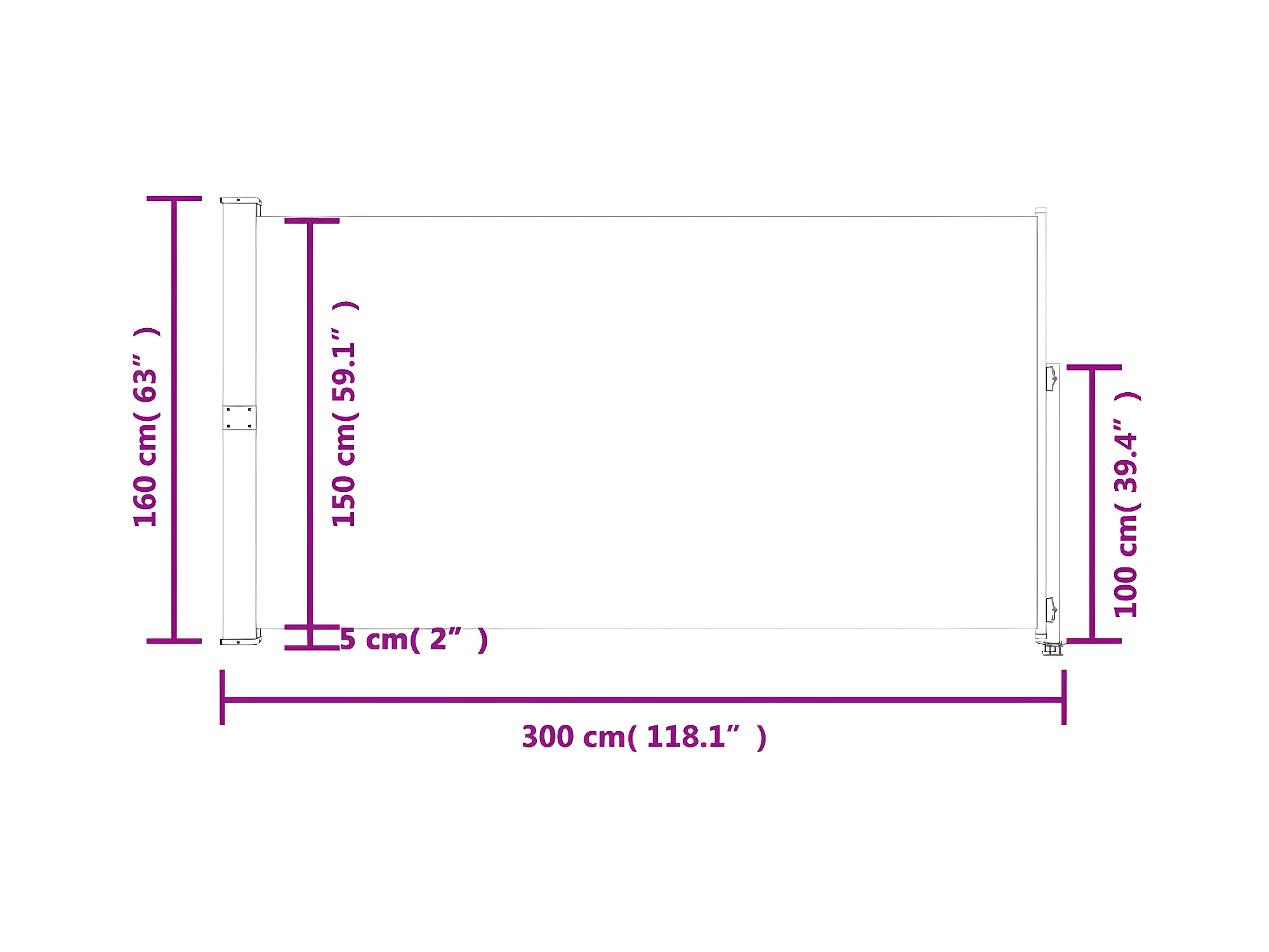 Auvent latéral rétractable de patio 100x500 cm Crème