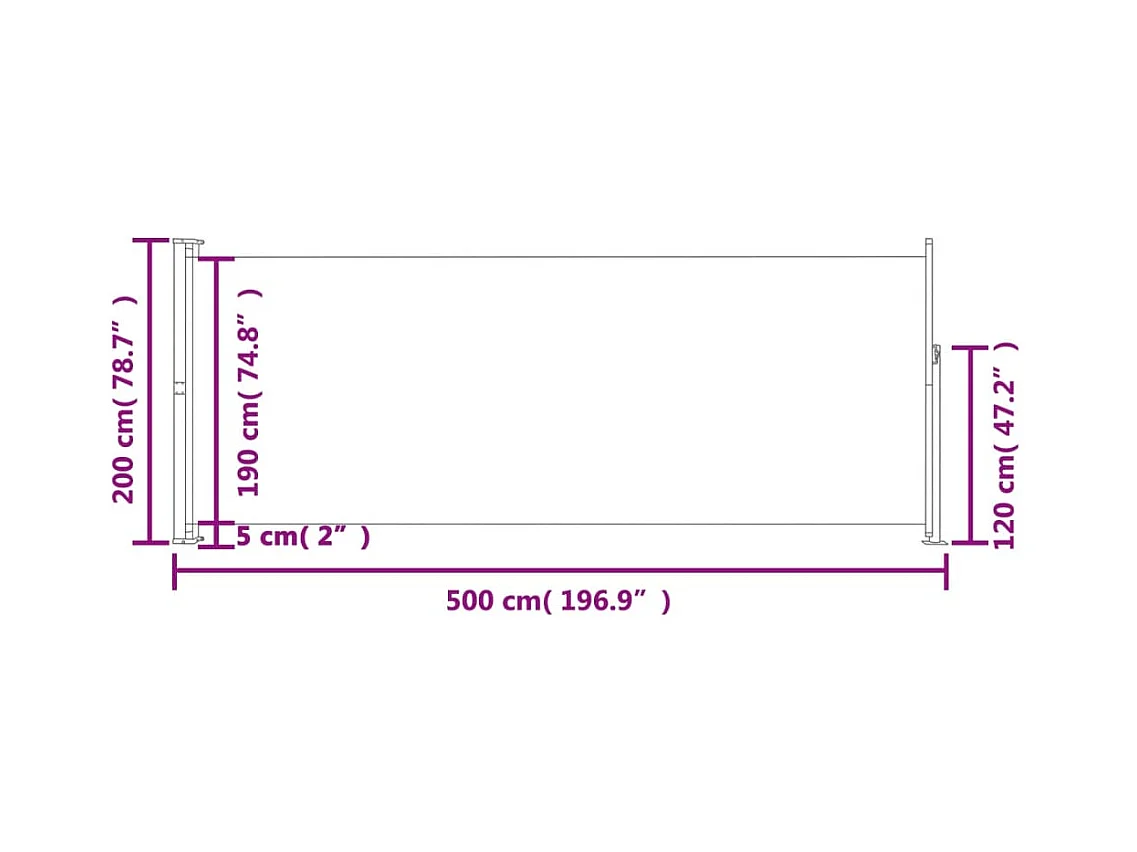Auvent latéral rétractable de patio 200x500 cm Noir