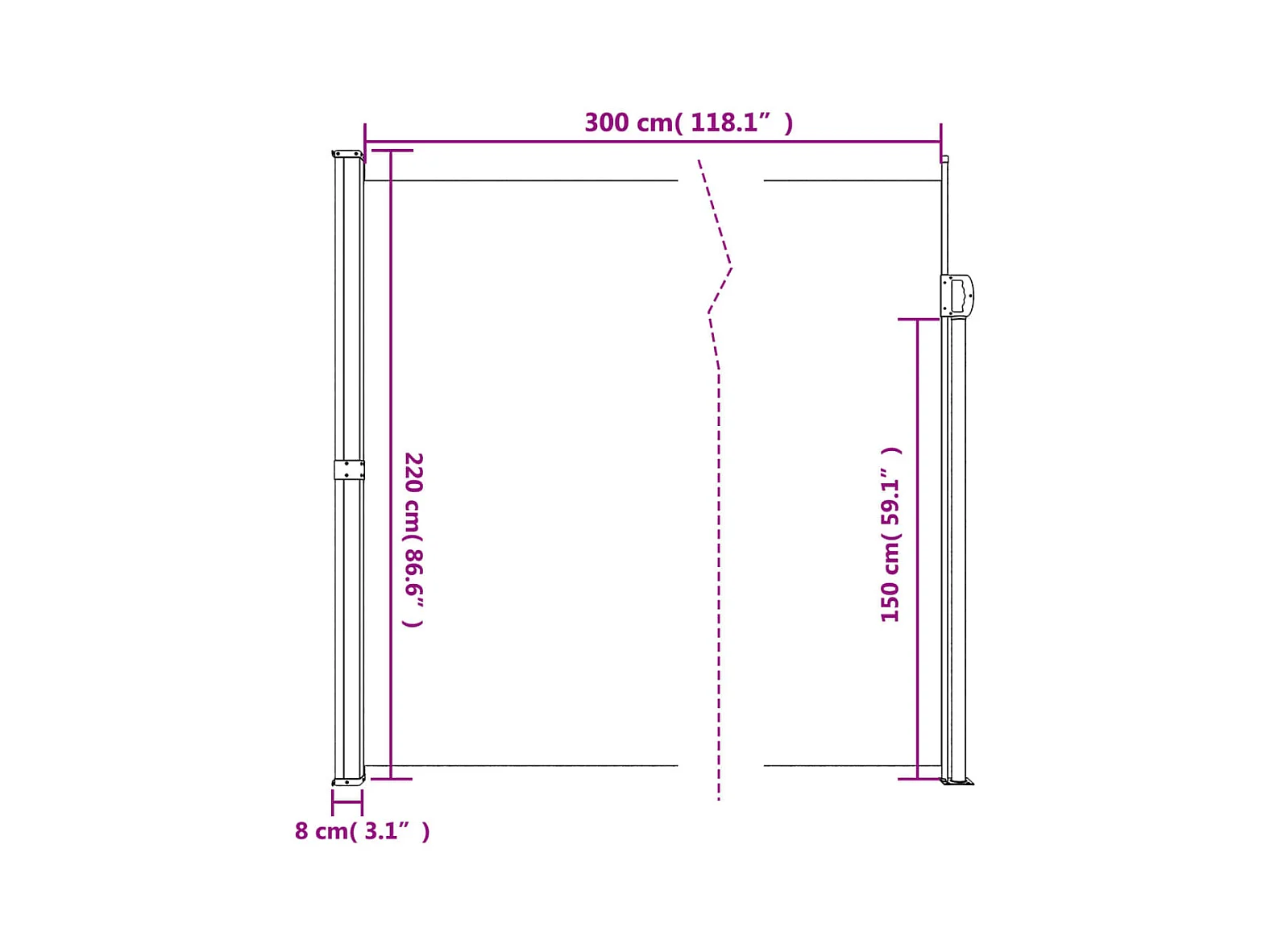 Auvent latéral rétractable vert foncé 100x300 cm