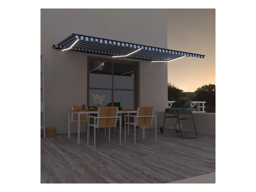 Auvent manuel rétractable avec LED 6x3 m Bleu et blanc