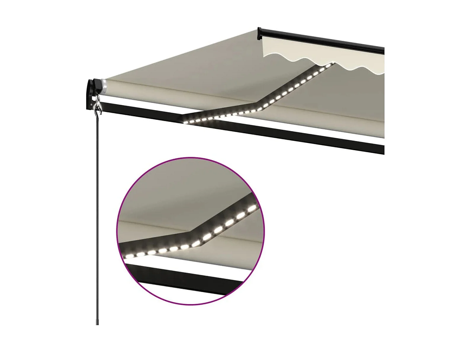 Auvent manuel rétractable avec LED 600x350 cm Crème