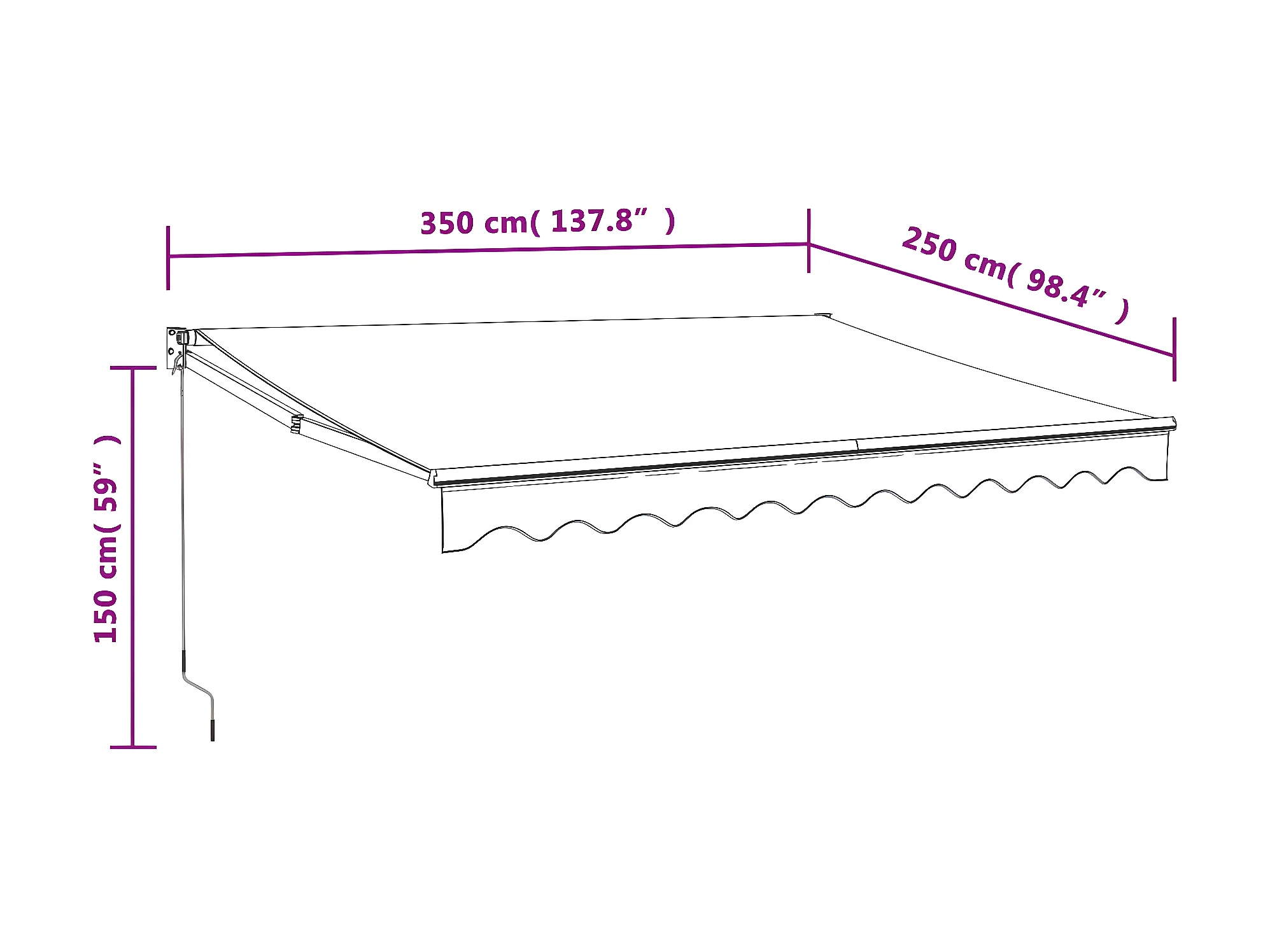 Auvent rétractable anthracite 3,5x2,5 tissu et aluminium
