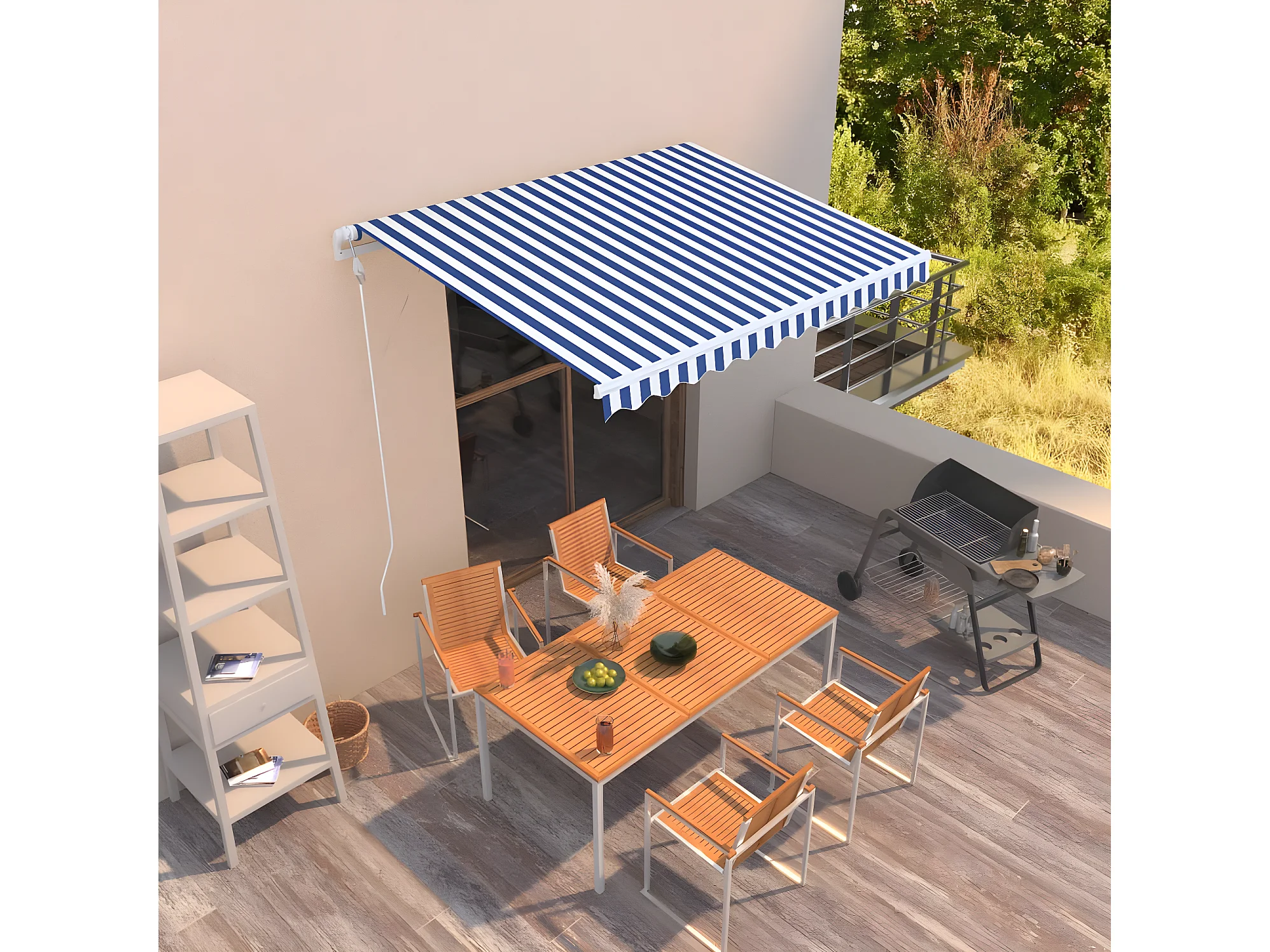 Auvent rétractable manuel avec store 3,5x2,5 m Bleu et blanc FR81593