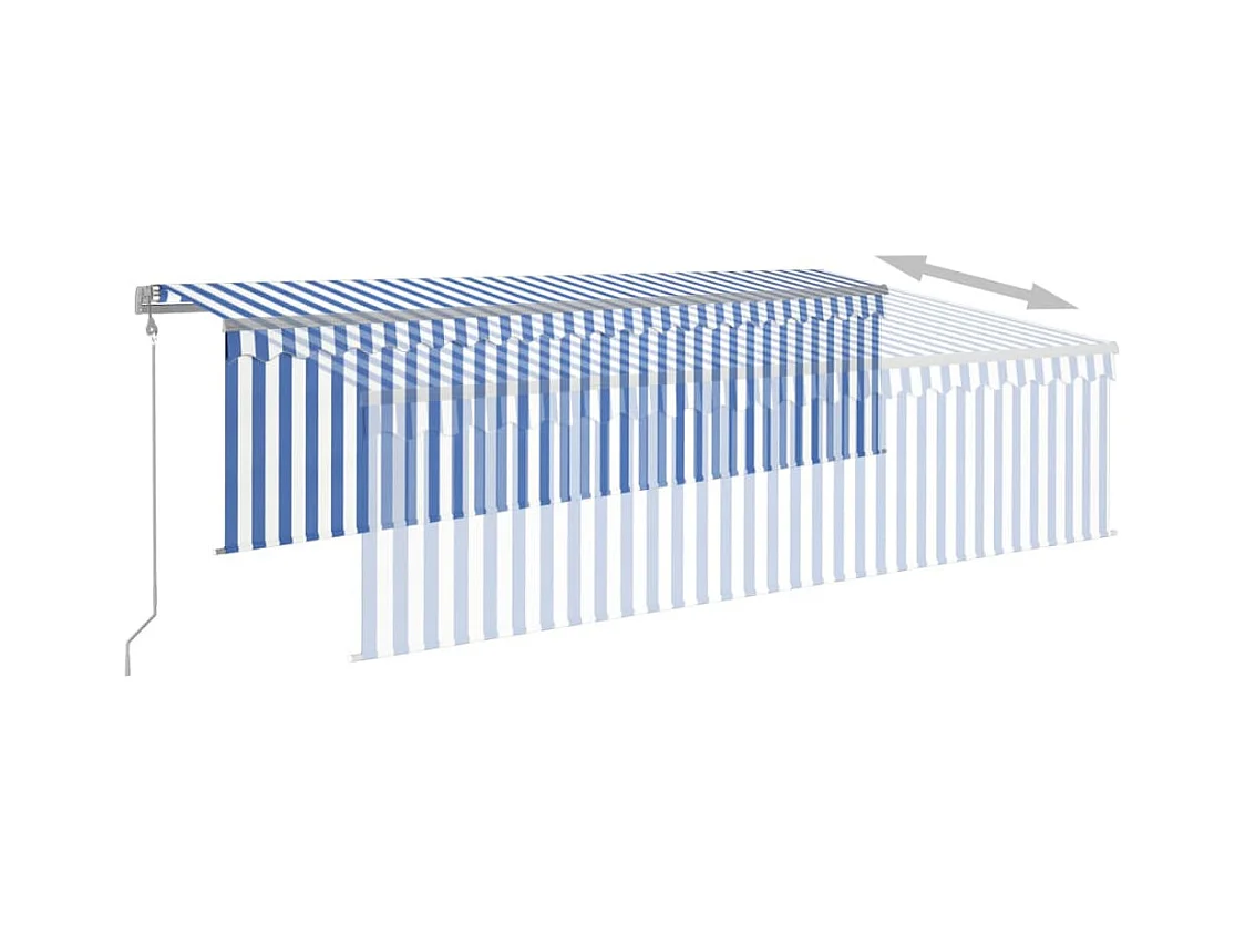 Auvent rétractable manuel avec store 5x3 m Bleu et blanc