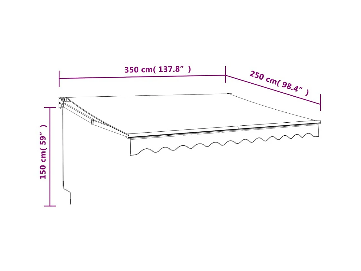 Store Banne de Balcon Rétractable avec Tissu et velours Résistant aux UV et à l'eau, Cadre en Aluminium Angle Réglable 5-35° ,3,6 x 3 m
