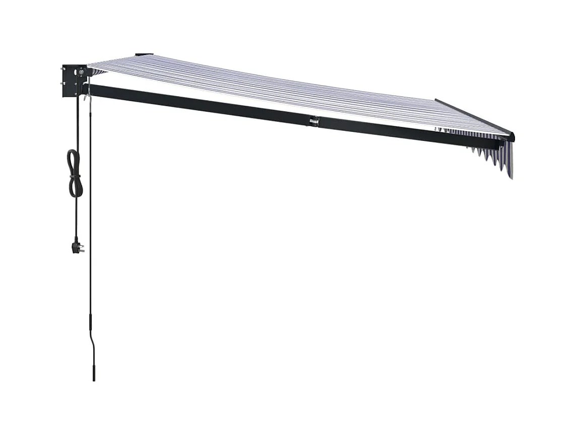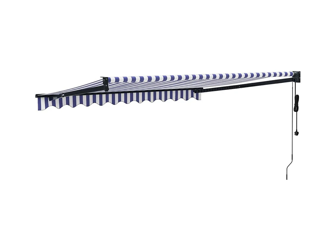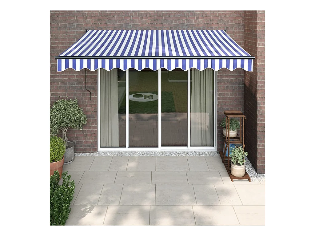 Auvent rétractable bleu et blanc 4x3 tissu et aluminium