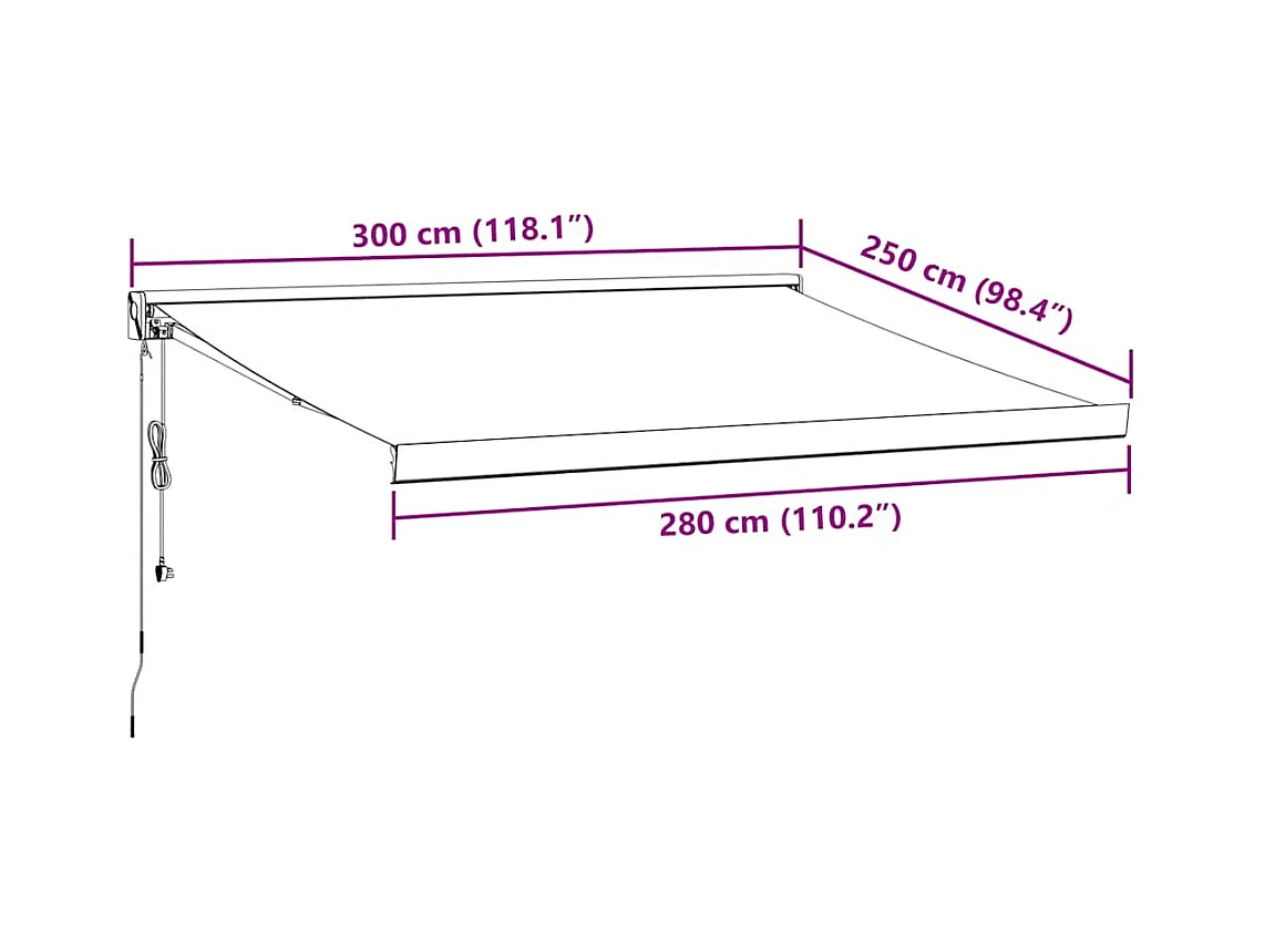 Store Banne de Balcon Rétractable avec Tissu et velours Résistant aux UV et à l'eau, Cadre en Aluminium Angle Réglable 5-35° ,3 x 2,5 m