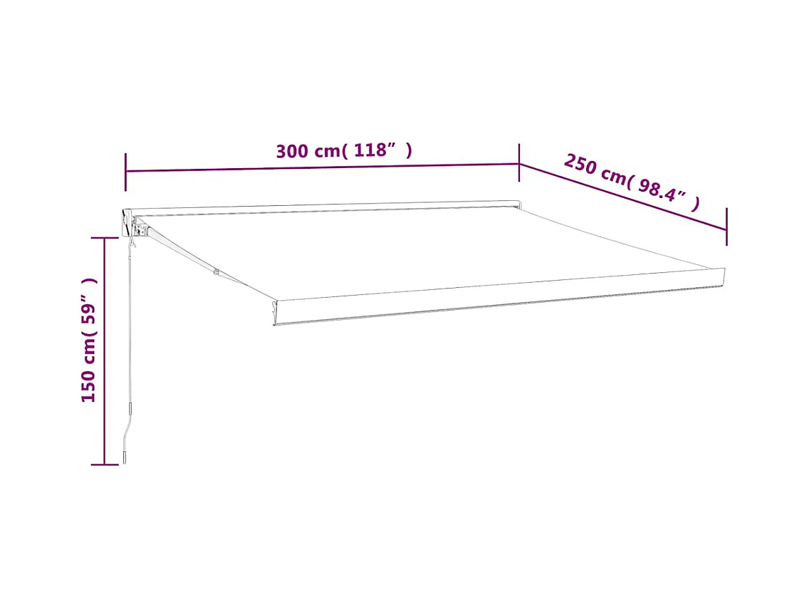 Auvent rétractable anthracite/blanc 3x2,5 m tissu et aluminium