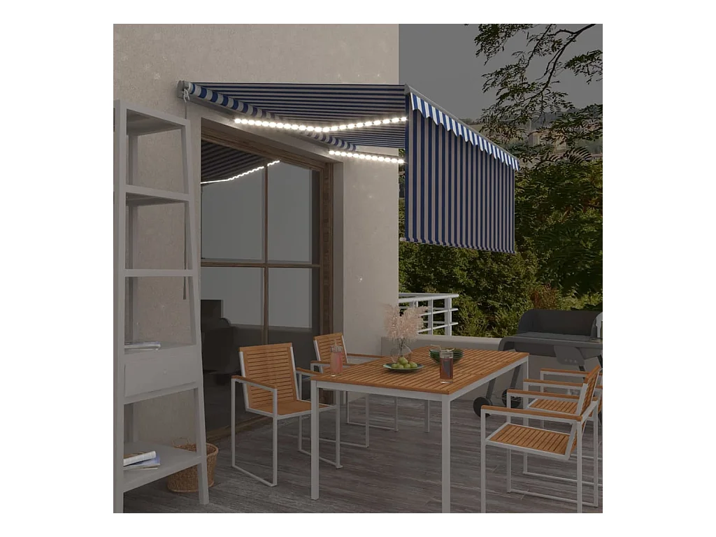 Auvent manuel rétractable avec LED 350x250 cm Bleu et blanc FR28063