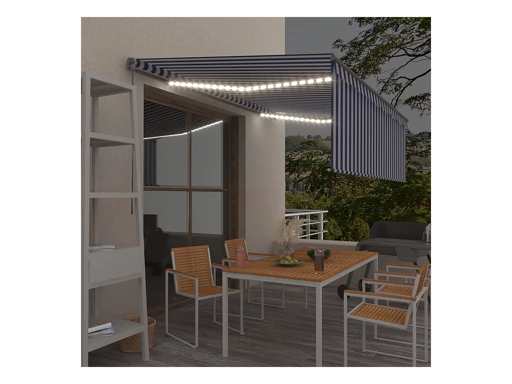 Auventanuel rétractable avec store et LED 4,5x3 Bleu blanc