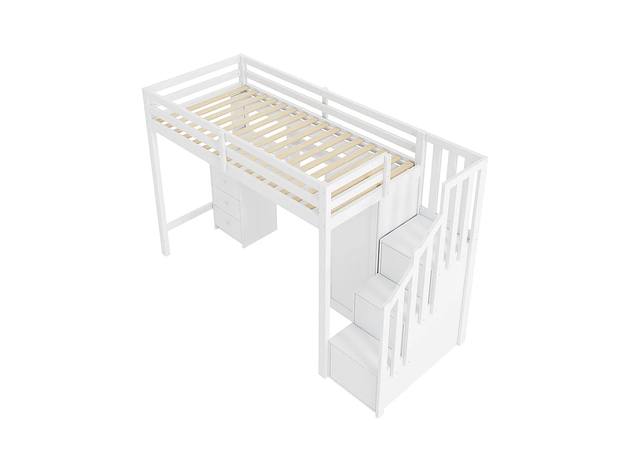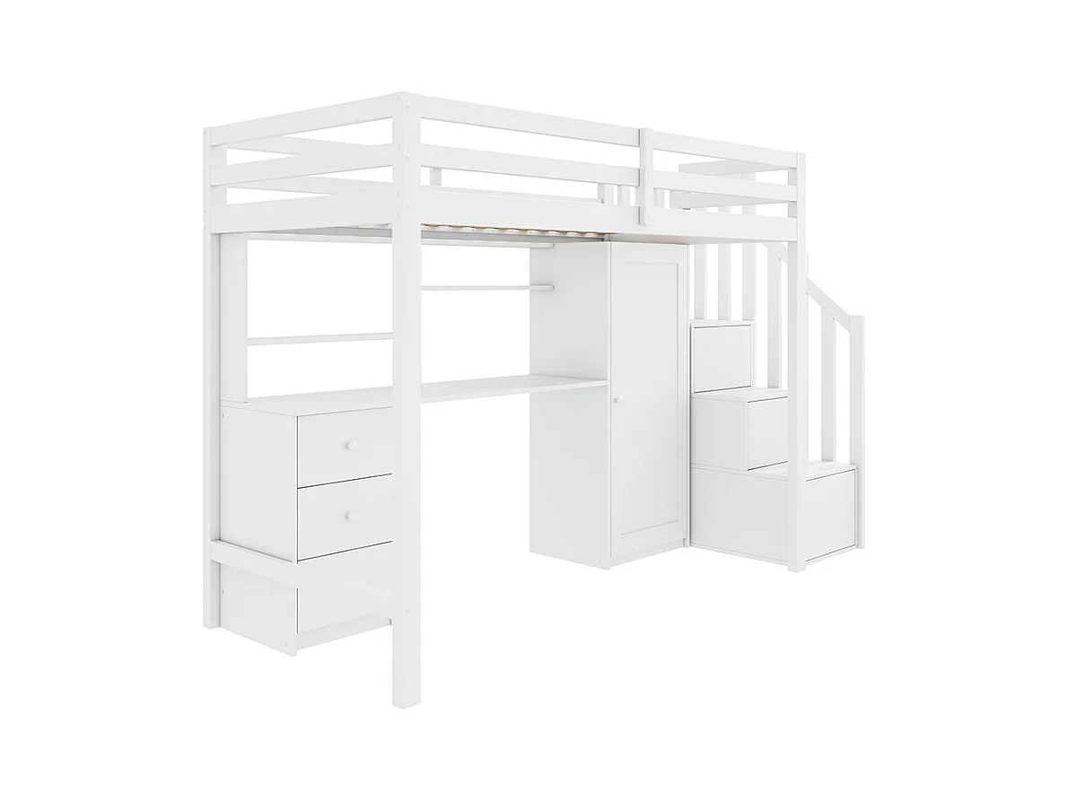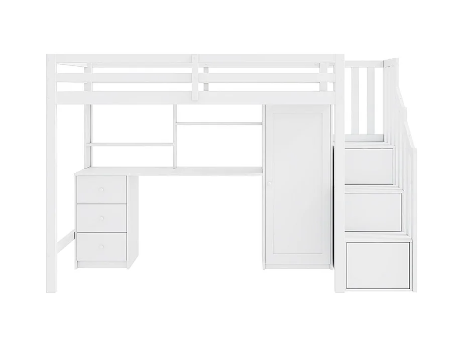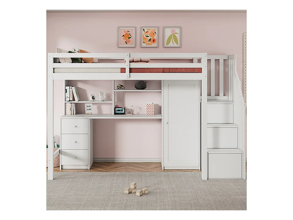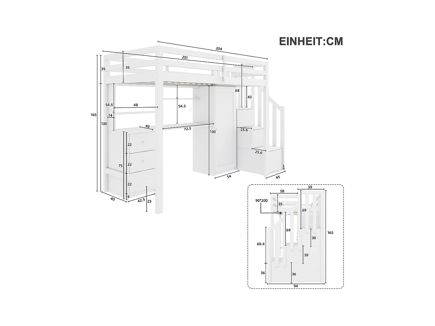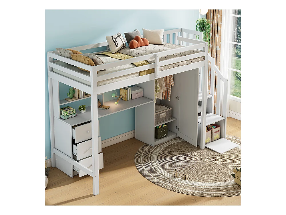 Avec bureau et armoire, escalier, lit superposé pour enfants, avec tiroirs et armoire d'escalier, 90*200 cm, blanc