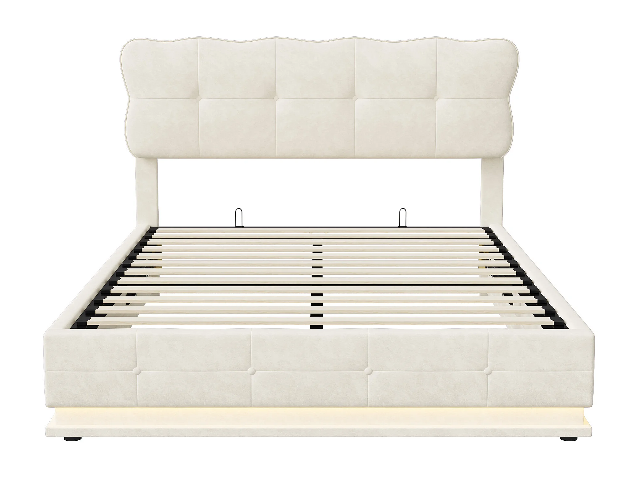 Lit coffre 140 x 200 cm avec Éclairage LED, Lit Double Capitonné avec Rangement et Tete de lit pour Adultes et Adolescents, Velours, Beige
