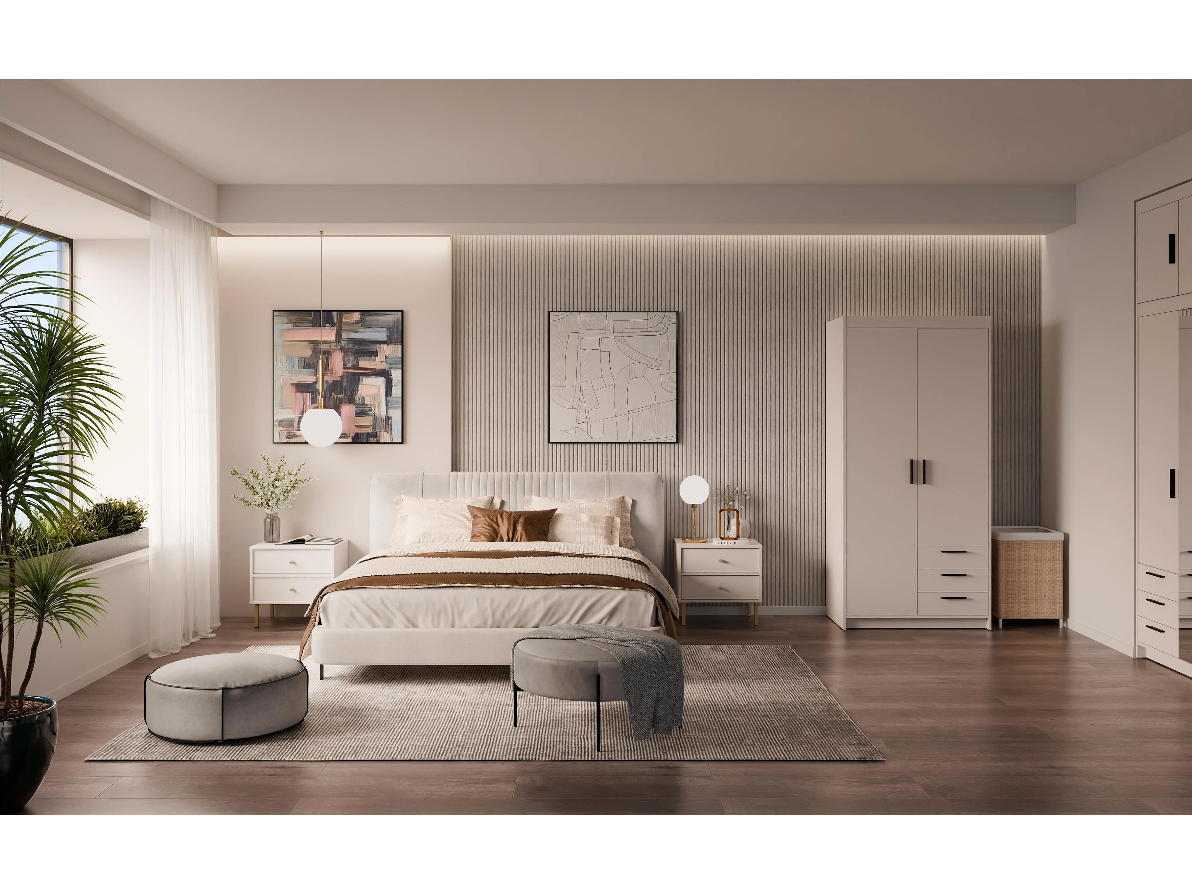 AX LIVING Armoire Storicos 2 portes 3 tiroirs beige 90 cm