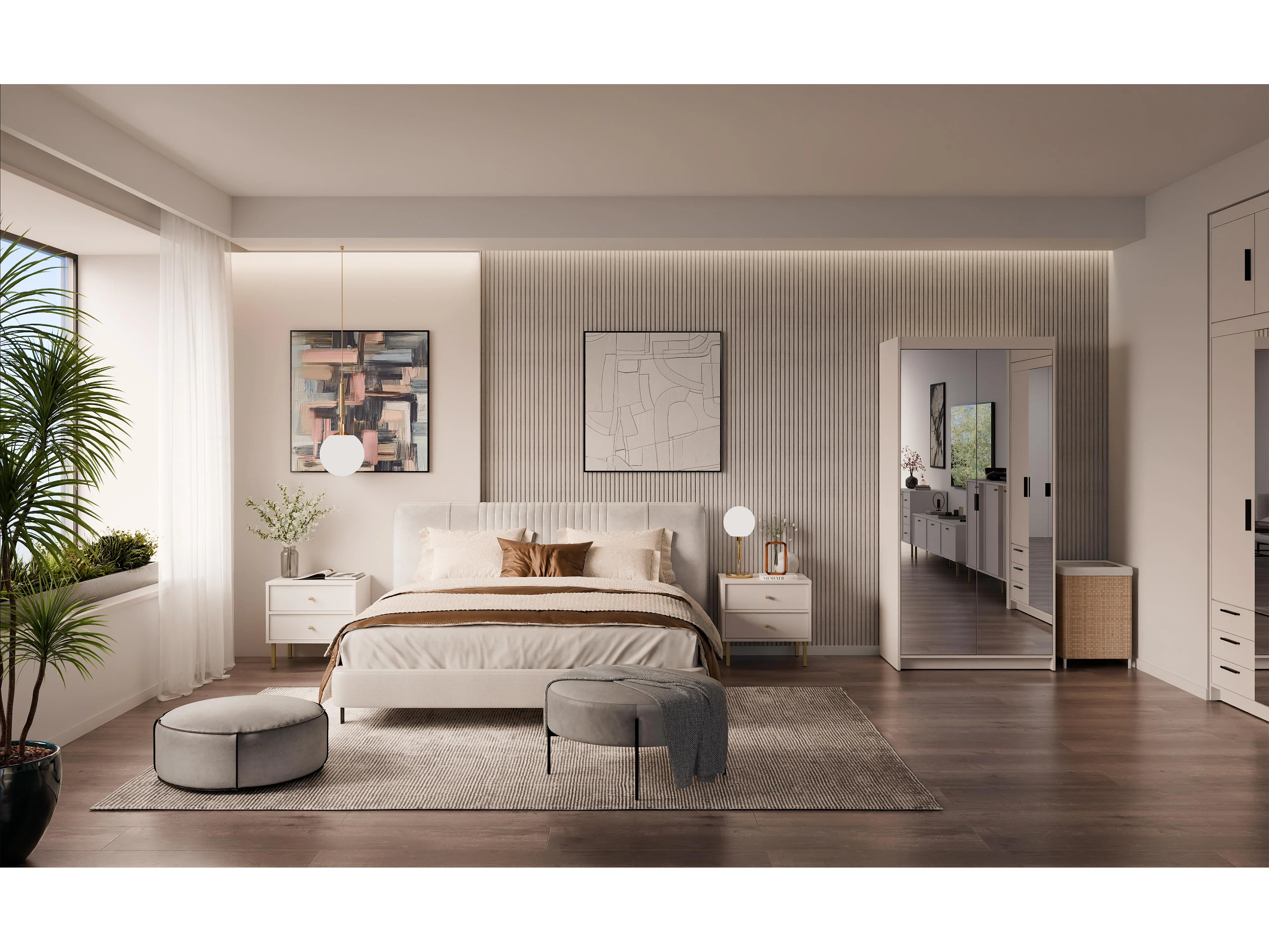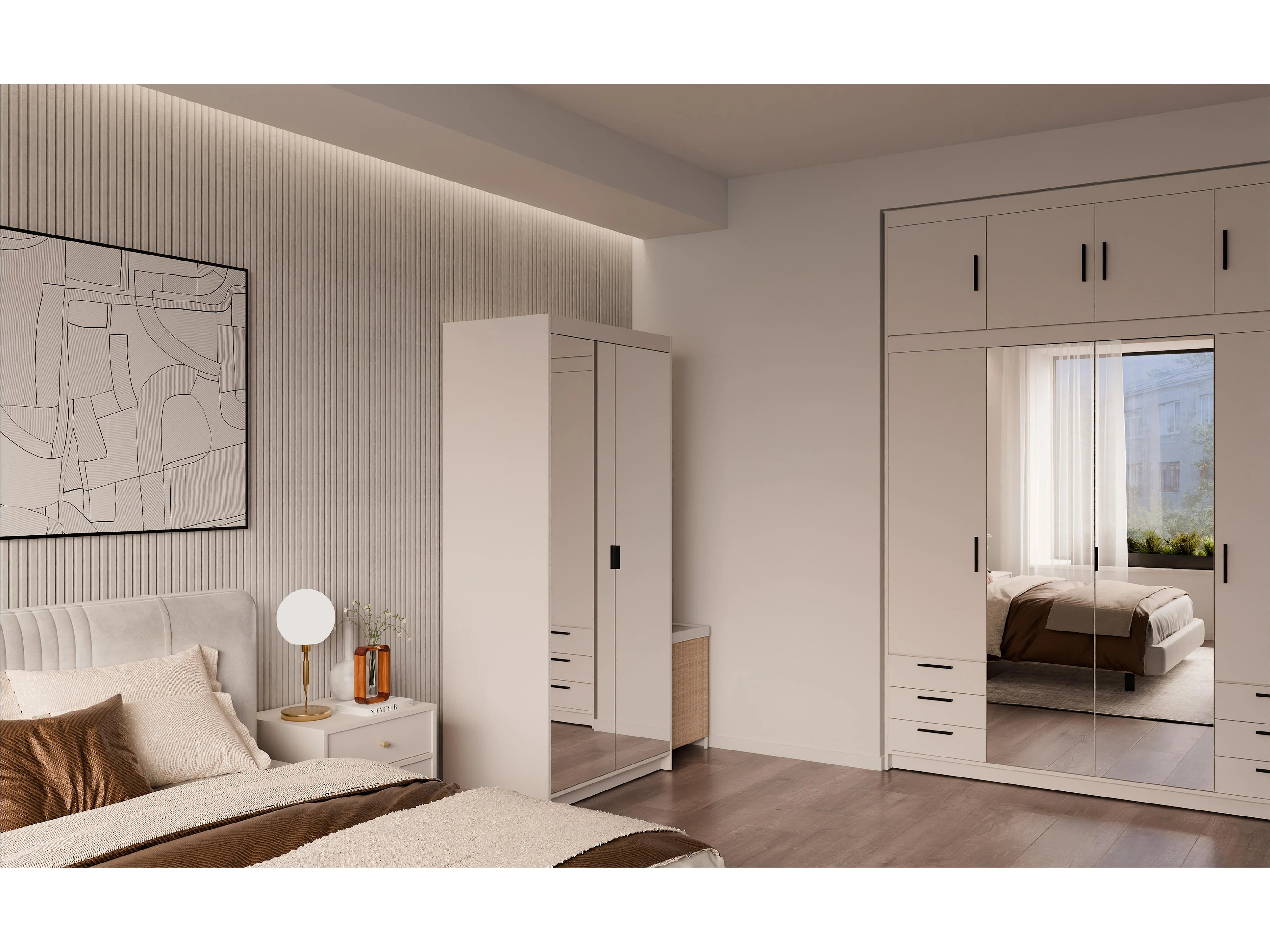 AX LIVING Armoire Storicos 2 portes avec miroir beige 90 cm