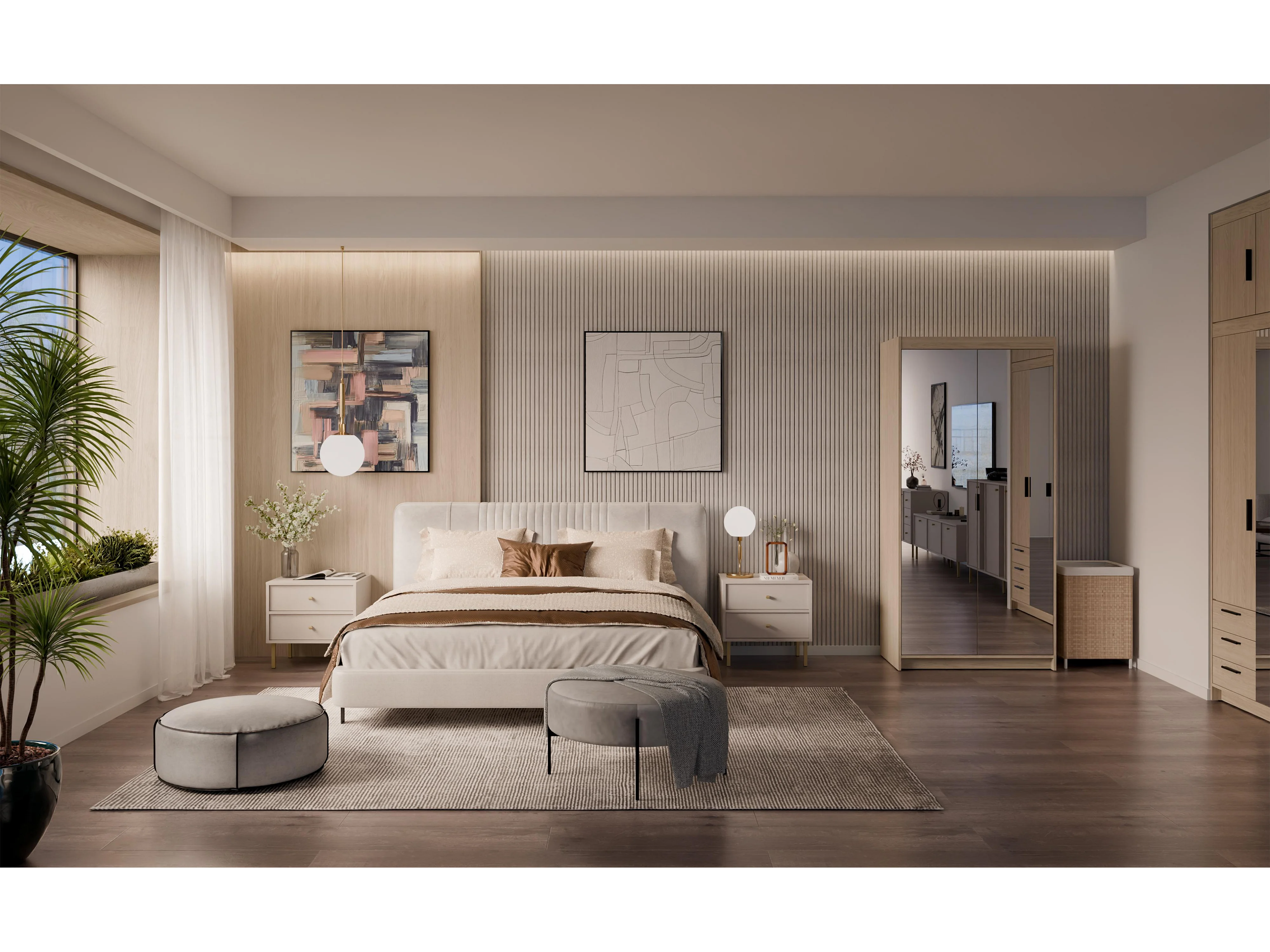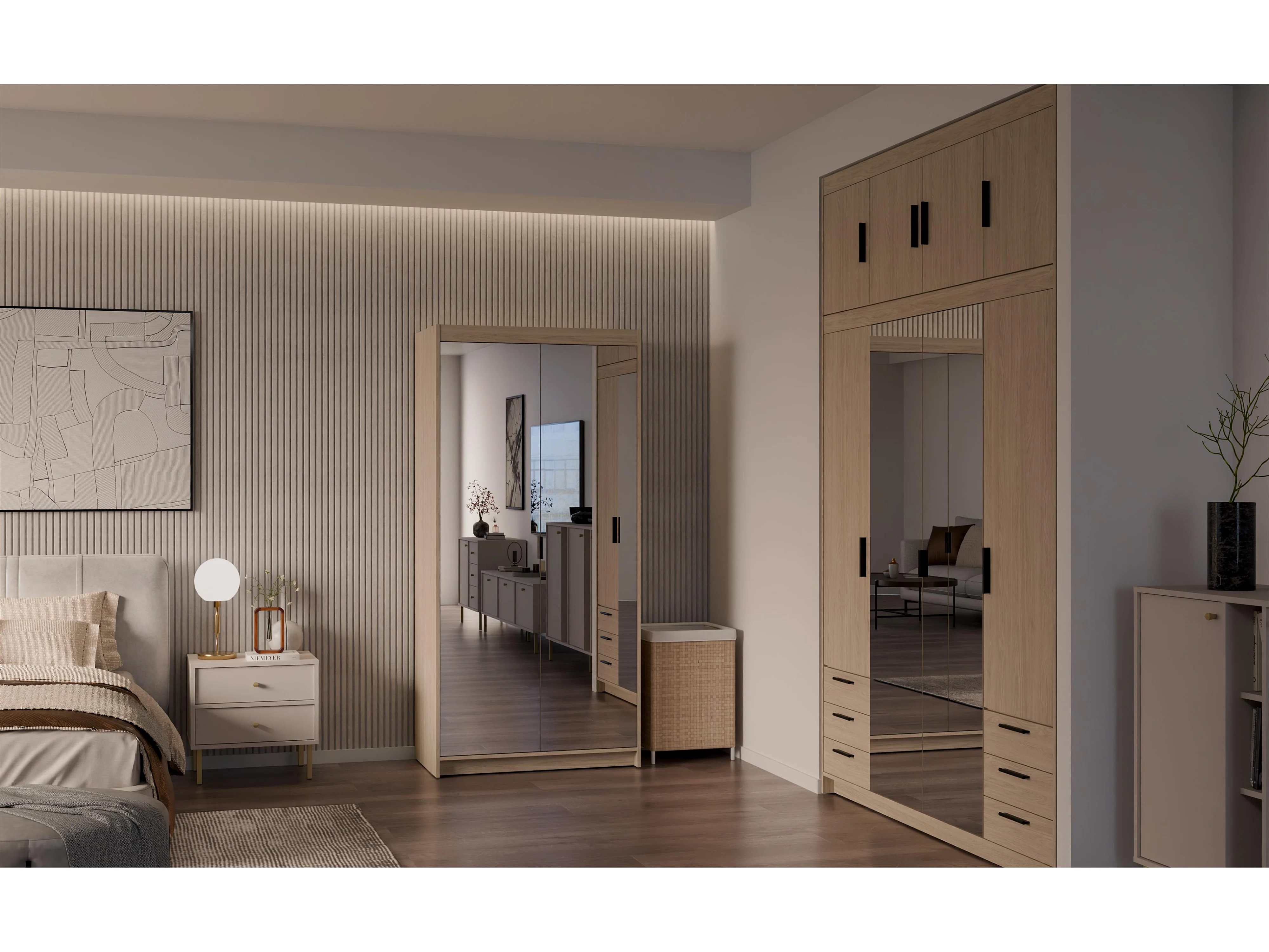 AX LIVING Armoire Storicos 2 portes avec miroir chêne huilé 90 cm