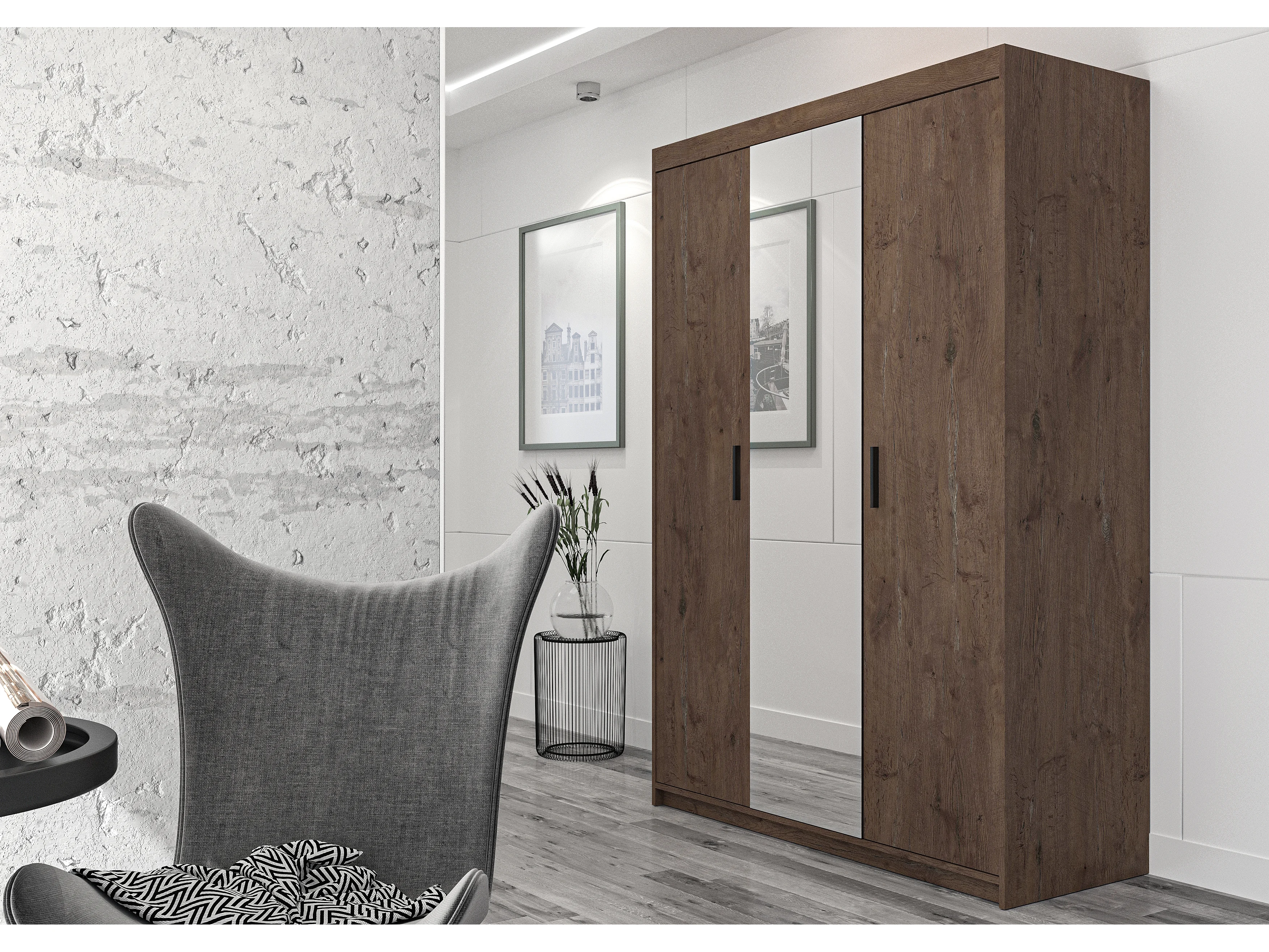 AX LIVING Armoire Storicos 3 portes avec miroir chêne Lefkas 133 cm