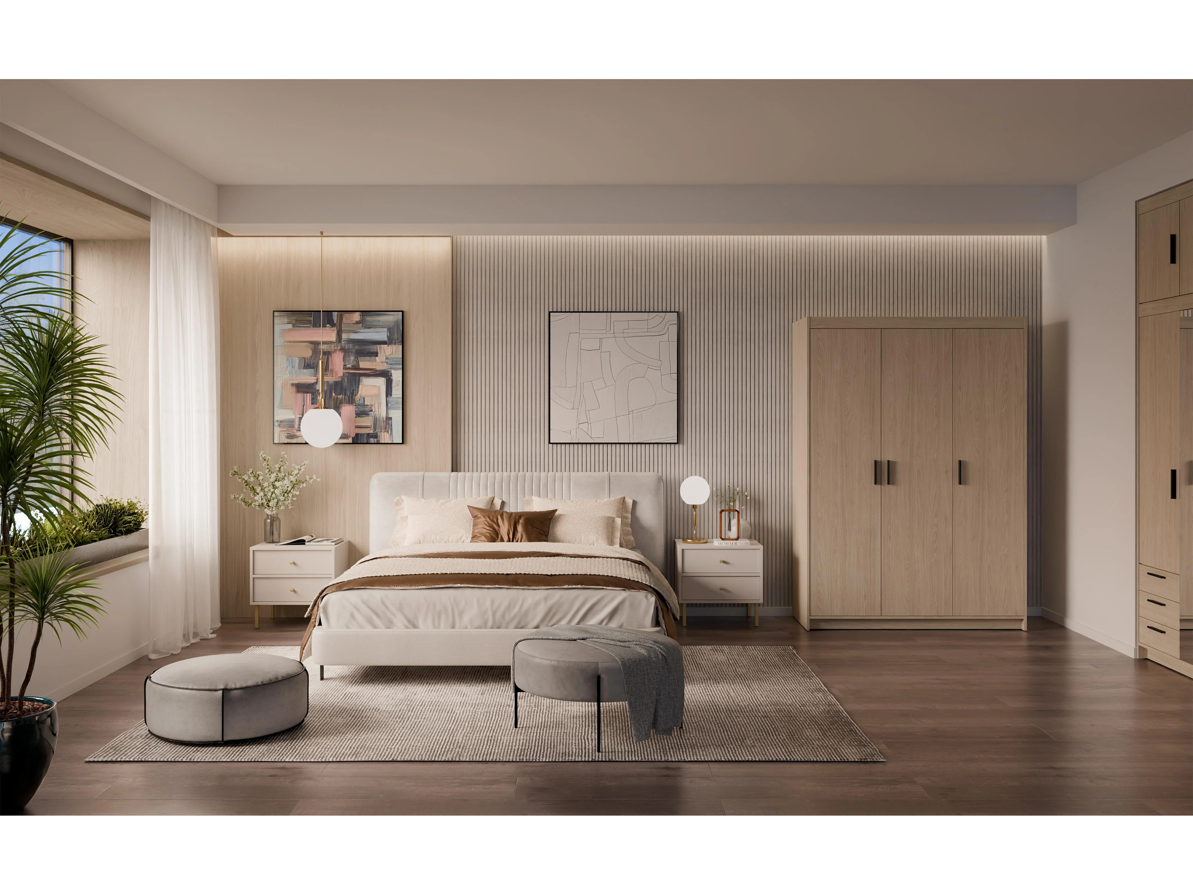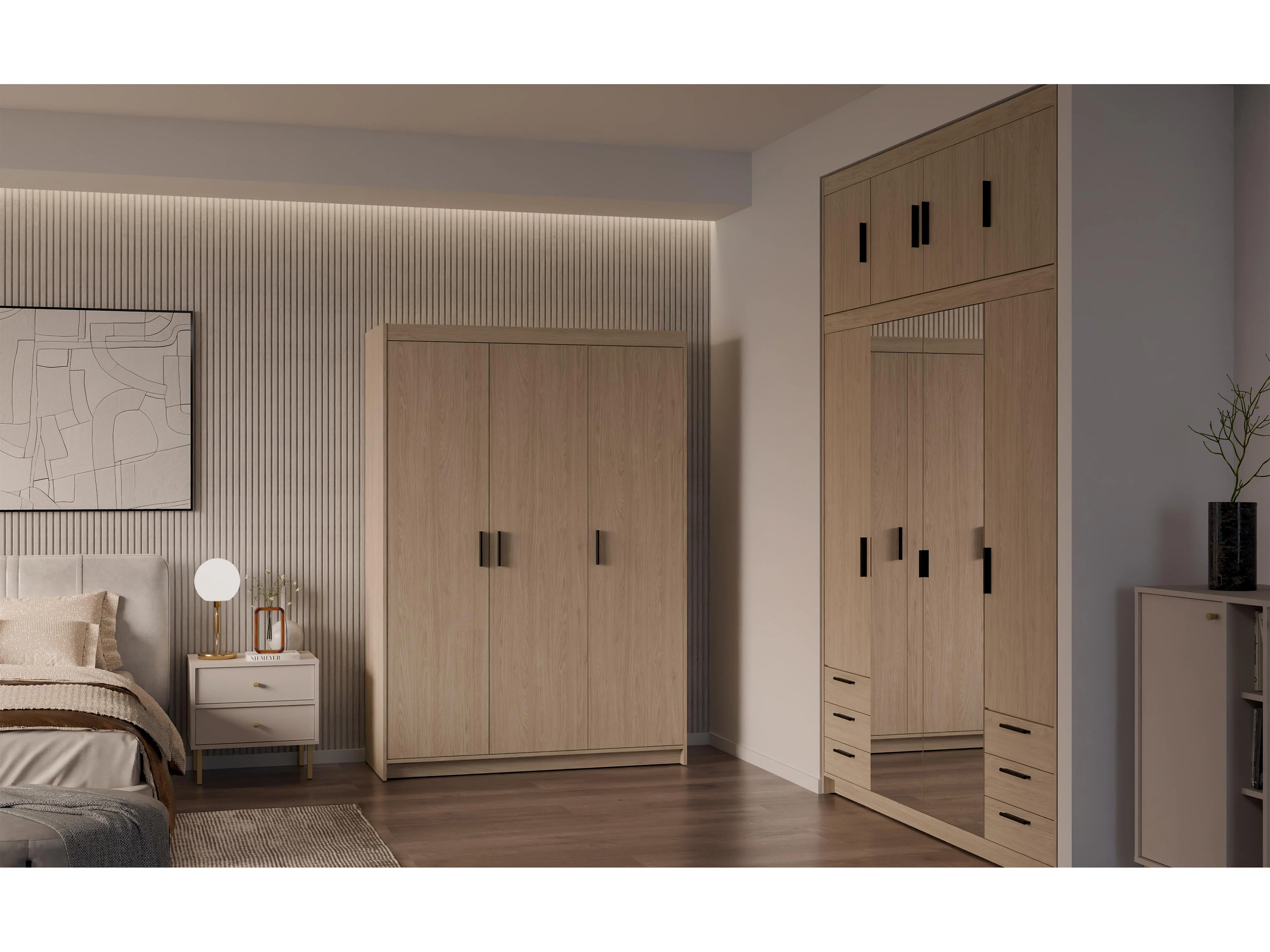AX LIVING Armoire Storicos 3 portes chêne huilé 133 cm moderne
