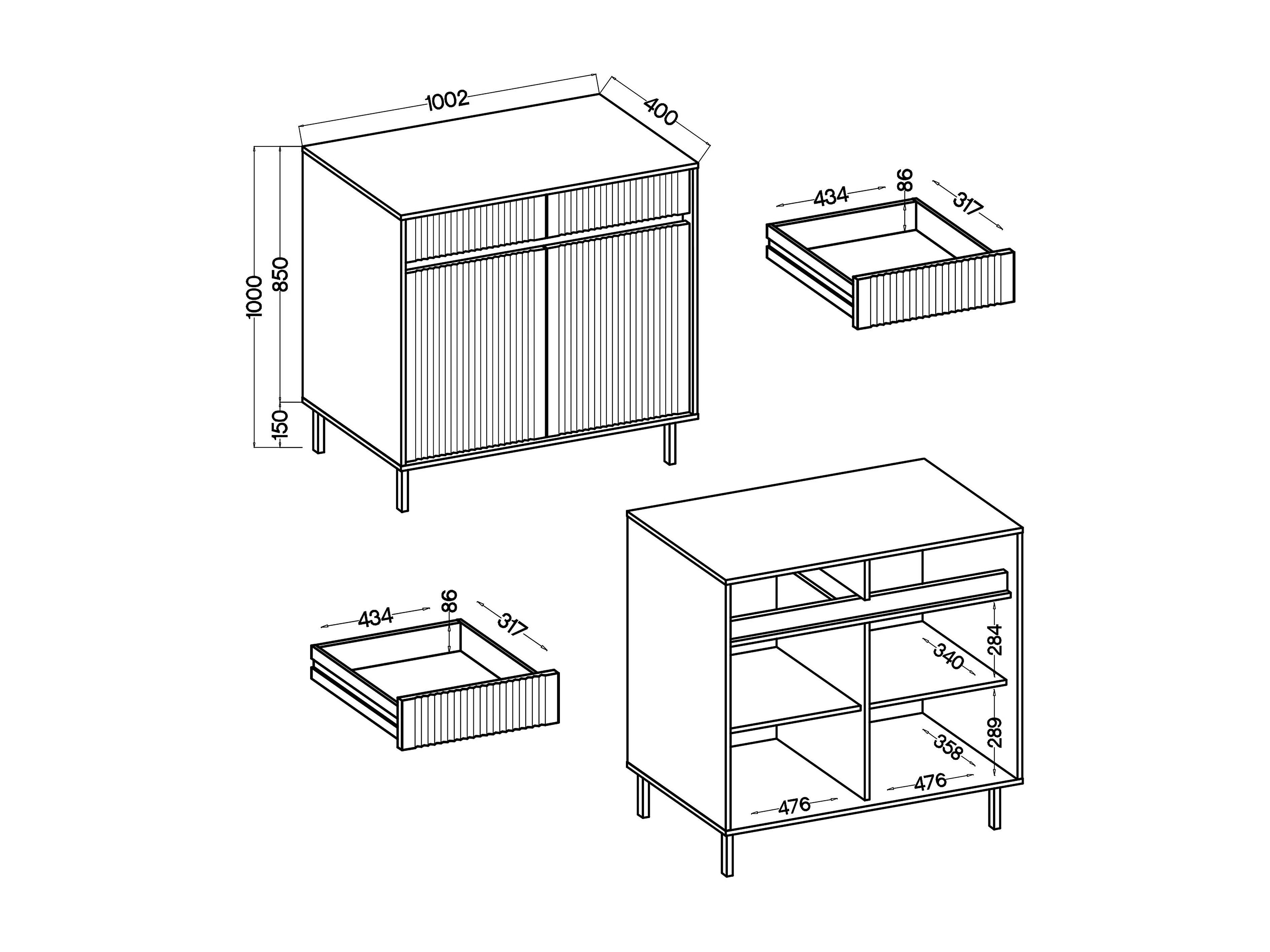 AX LIVING Buffet BODRUM 2 portes 2 tiroirs 100 cm chêne Evoke
