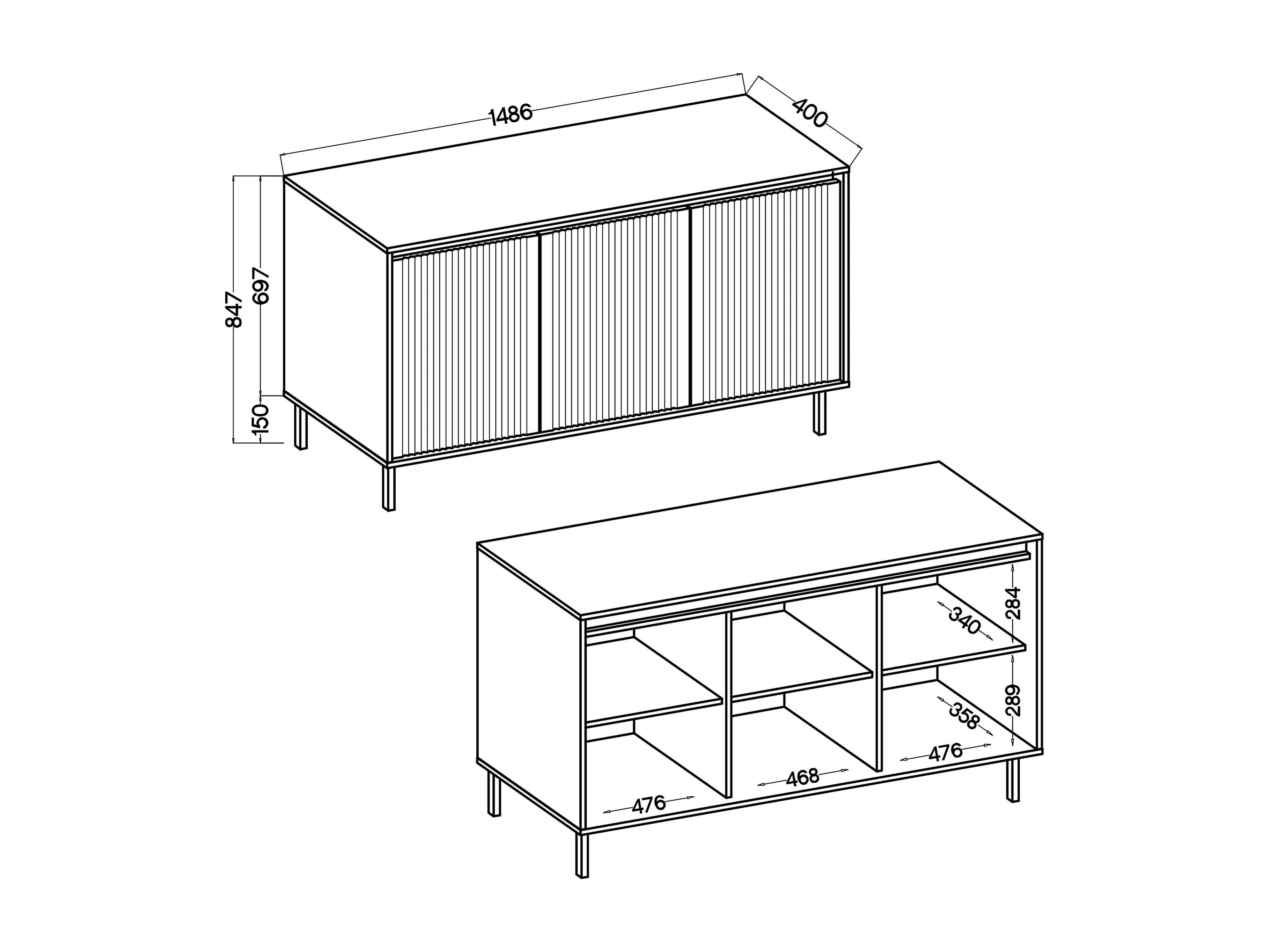AX LIVING Buffet BODRUM 3 portes 149 cm beige sable
